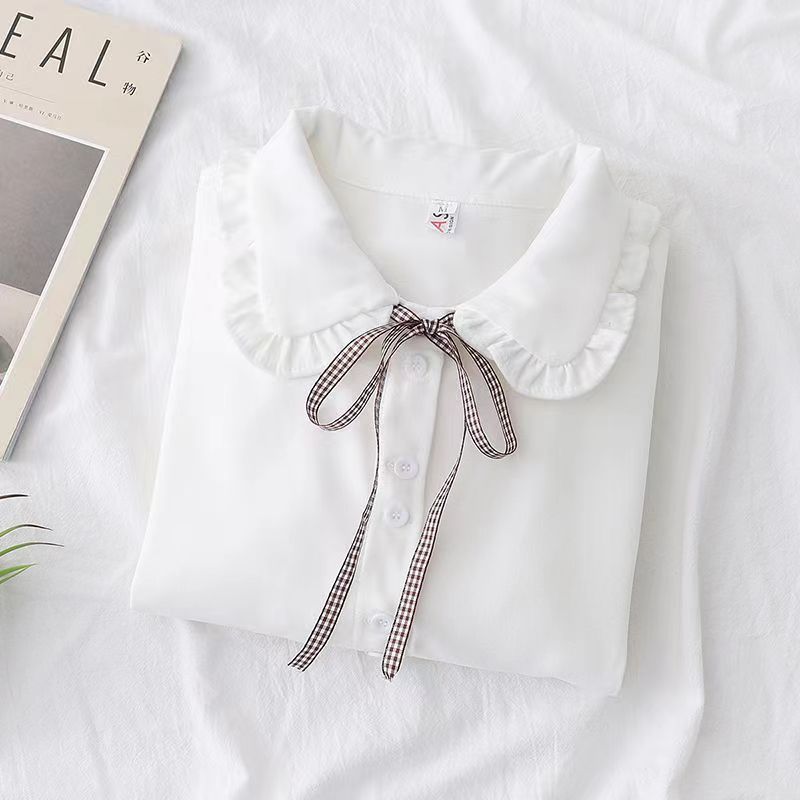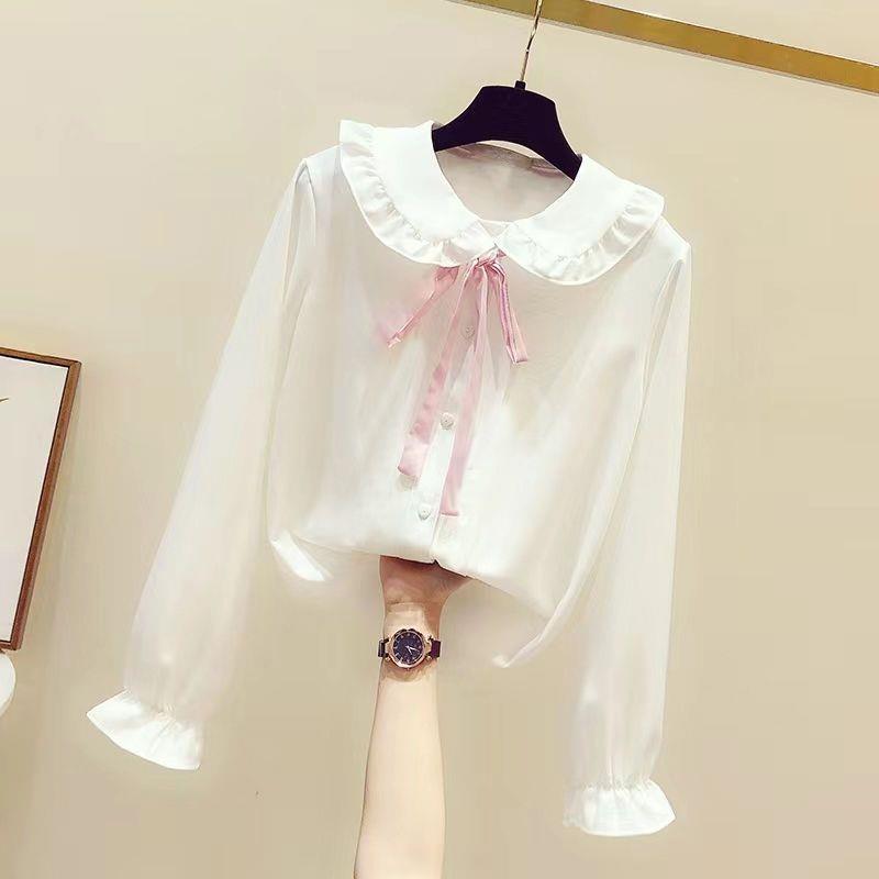 아동용 쉬폰 긴팔 흰색 셔츠, 학생용 흰색 상의, 자외선 차단 의류, 중대형 아동복, 여아용 스위트 스타일