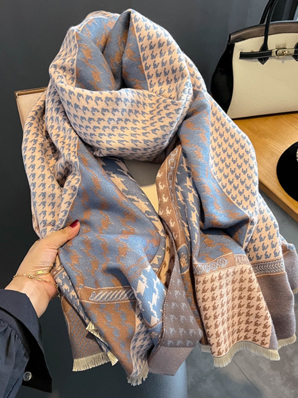 Houndstooth 블루 스카프 여성용 겨울 고급 영국 올 매치 2023 새로운 캐시미어 이중 목적 숄 스카프스토어 가기