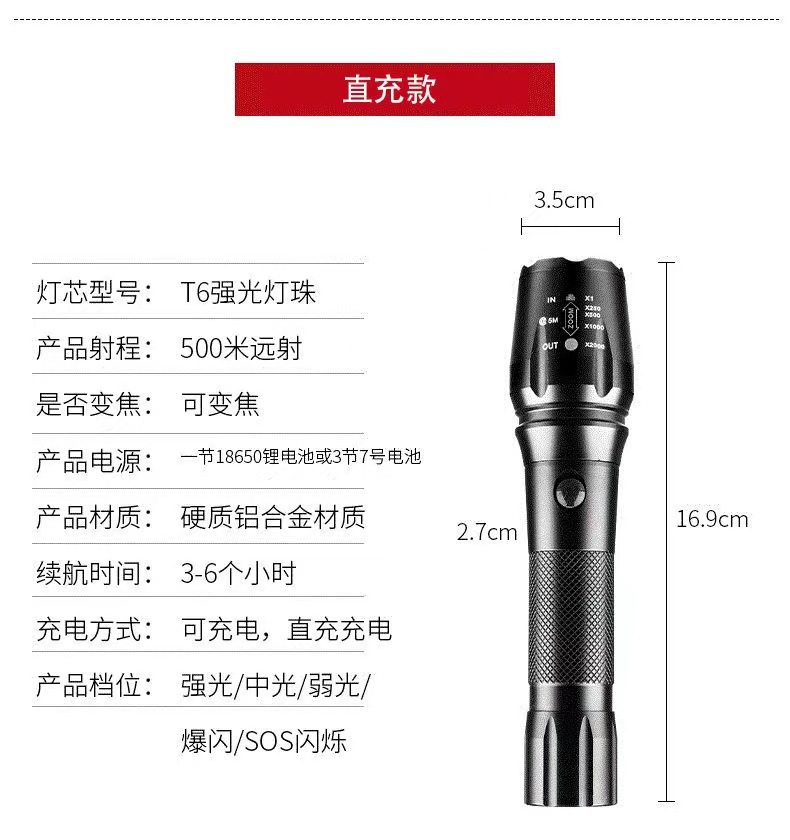 손전등 충전식 슈퍼 브라이트 야외 장거리 미니 휴대용 다기능 홈 장수명 LED 램프스토어 가기