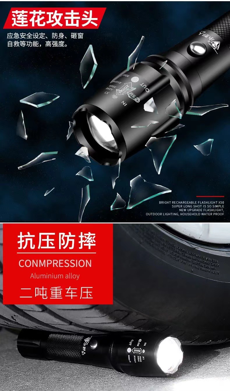 손전등 충전식 슈퍼 브라이트 야외 장거리 미니 휴대용 다기능 홈 장수명 LED 램프
