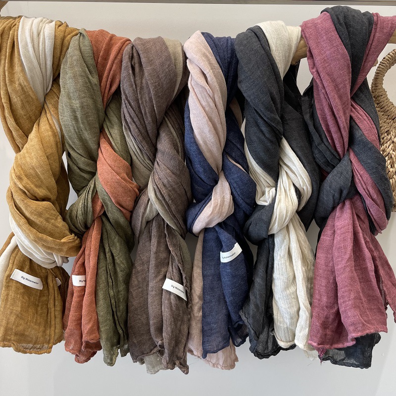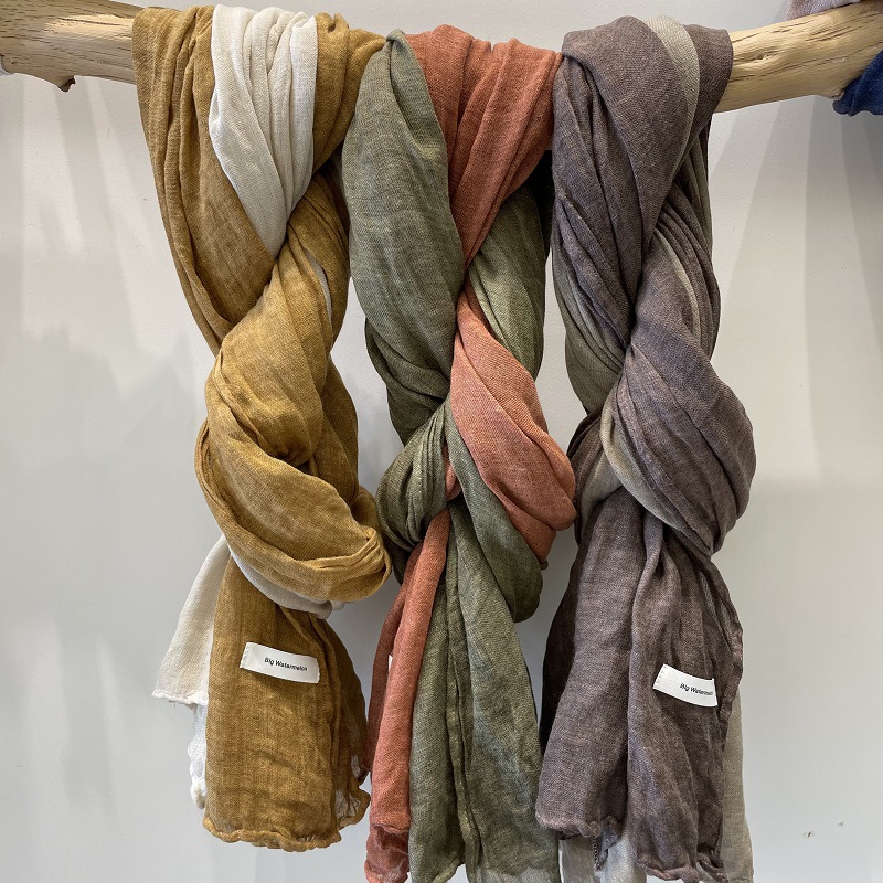 가을과 겨울 새로운 한국 이스트 게이트 노크 서양식 컬러 매칭 면과 린넨 스카프 여성의 유행 모든 일치 일본식 외부 숄스토어 가기