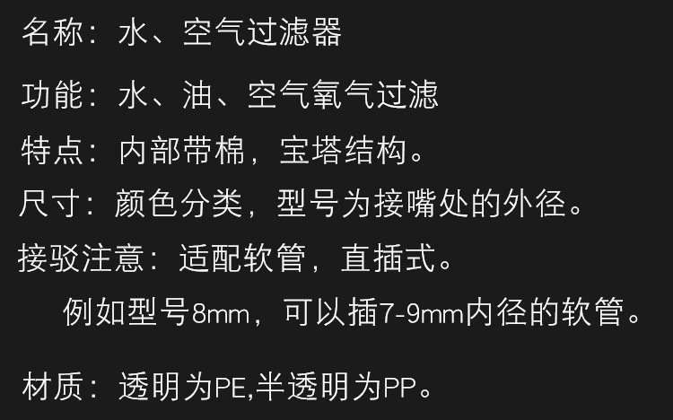 호스 필터 물 공기 정화 스트레이트 커넥터 파이프 불순물 필터 외부 어항 수족관 산소