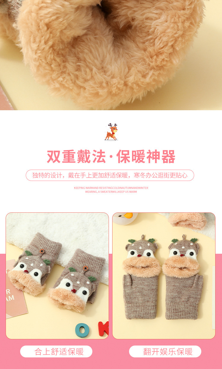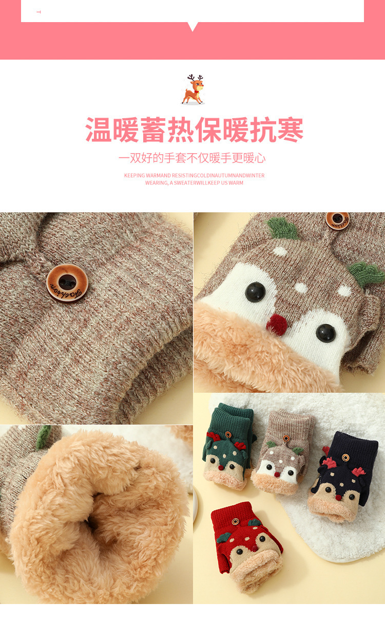 크리스마스 장갑 남녀공용 겨울 방한 플립업 반장갑 플러스 벨벳 두꺼운 보온 학생용 글쓰기 만화 장갑스토어 가기
