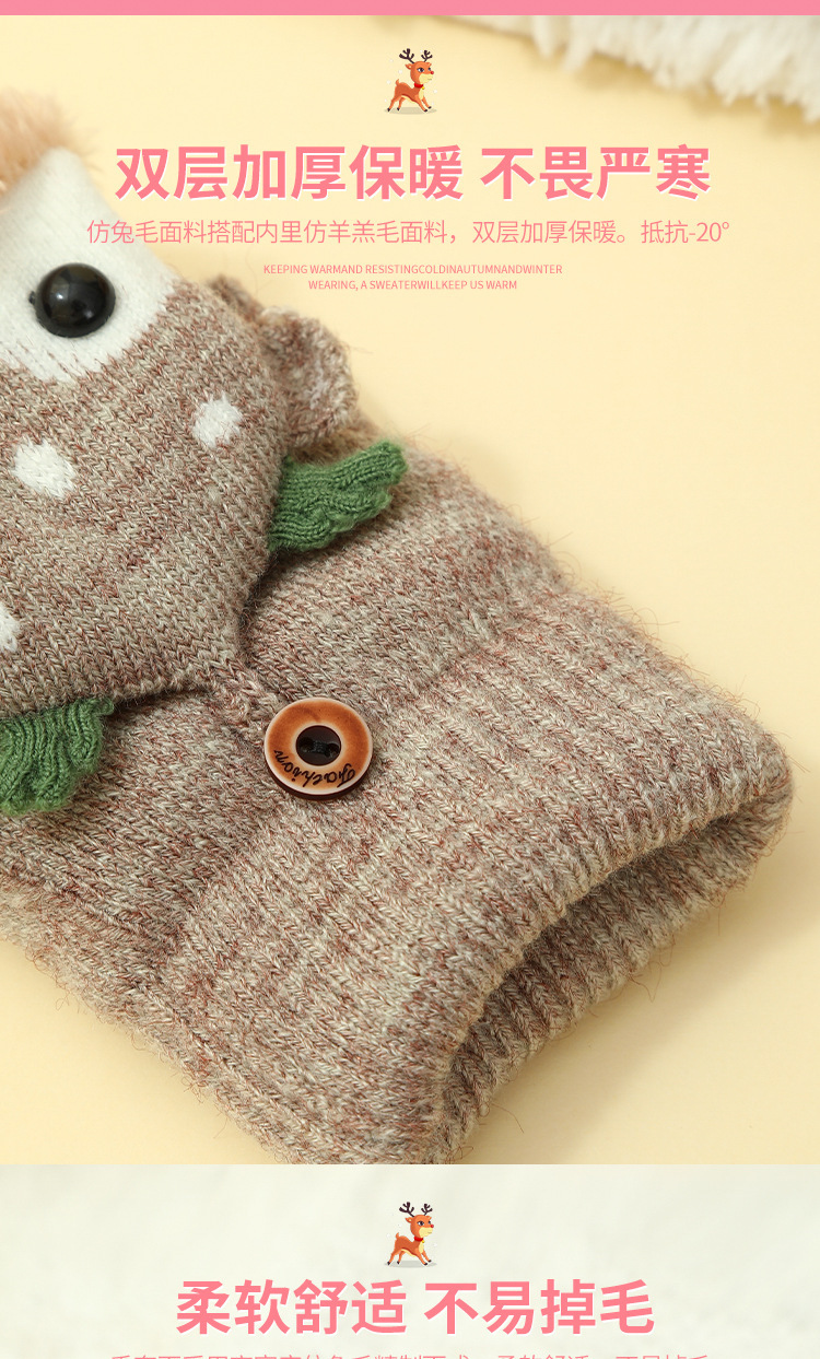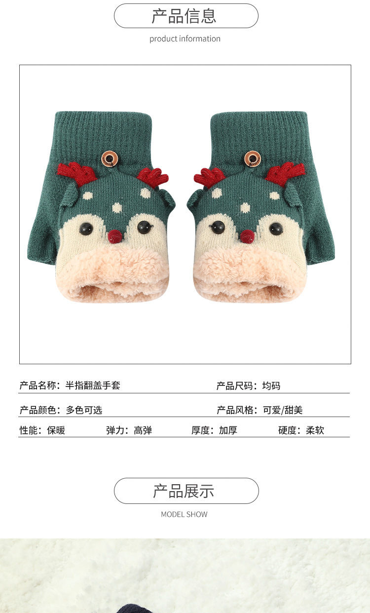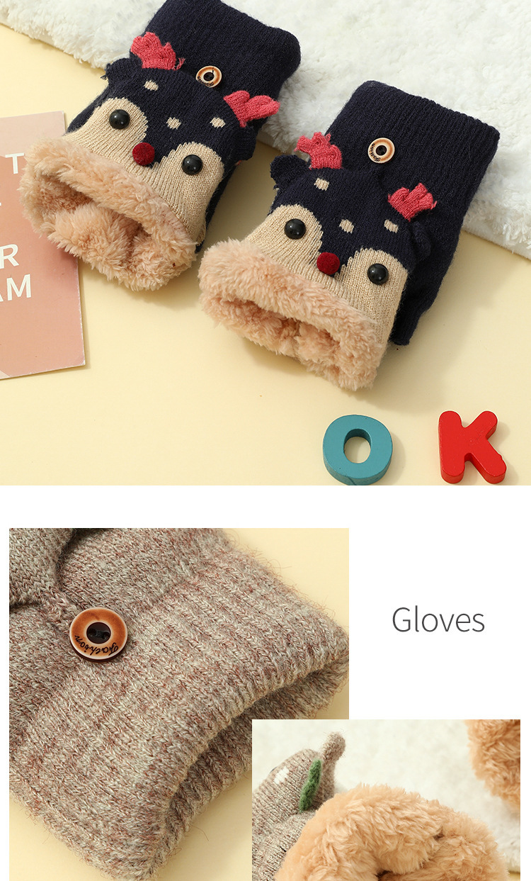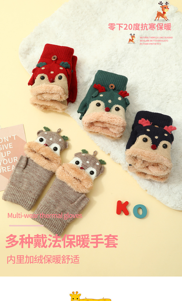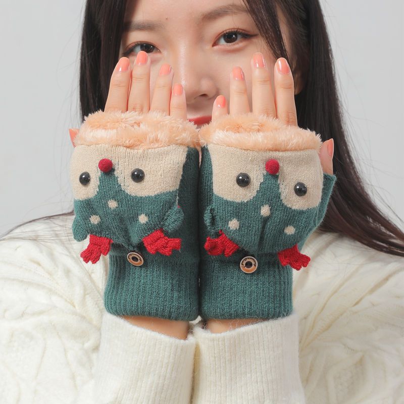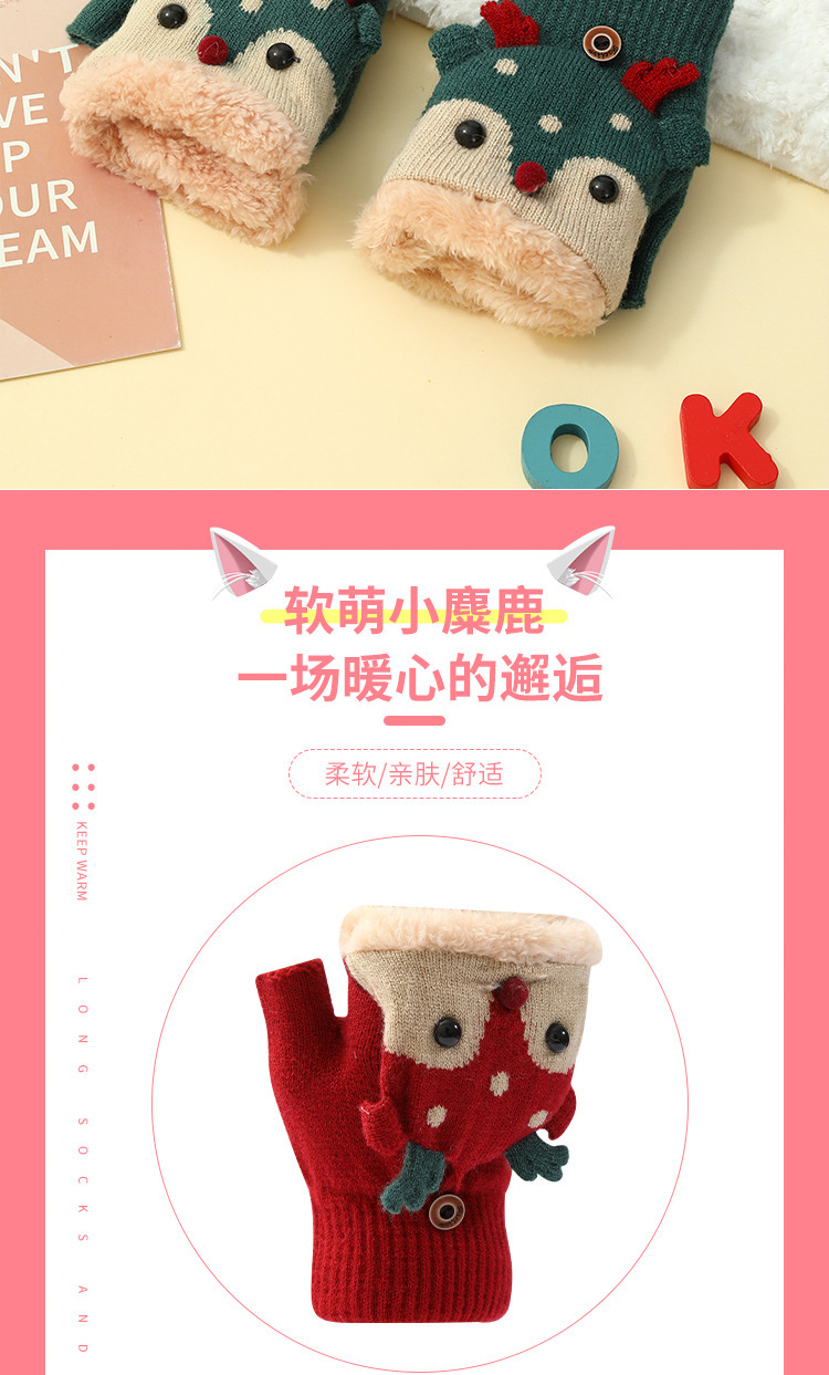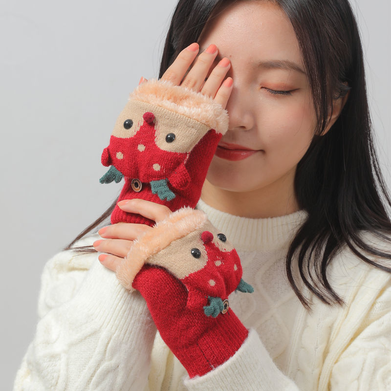 크리스마스 장갑 남녀공용 겨울 방한 플립업 반장갑 플러스 벨벳 두꺼운 보온 학생용 글쓰기 만화 장갑