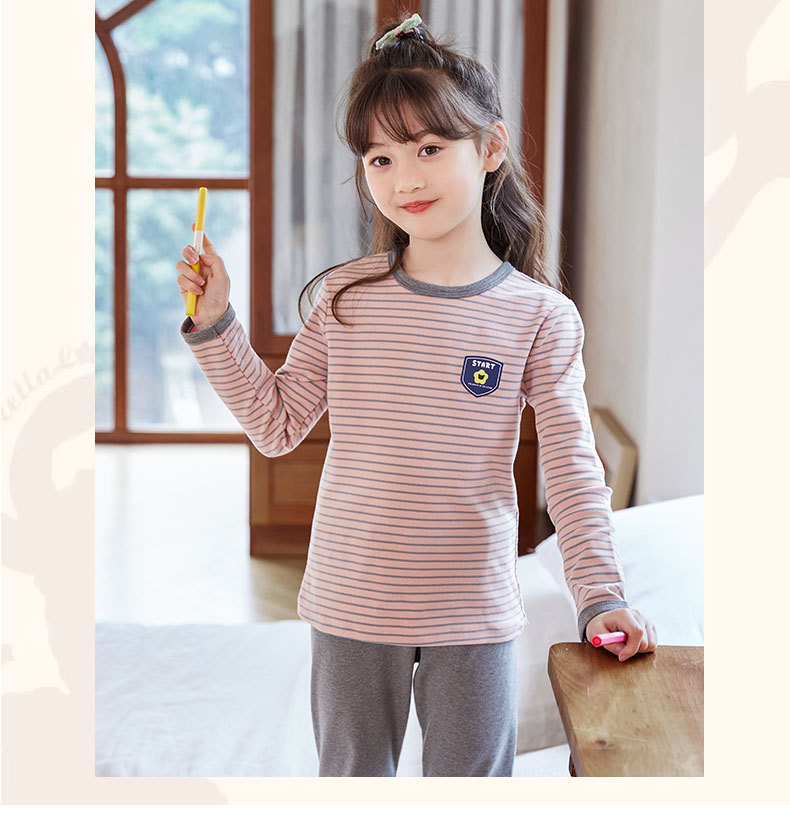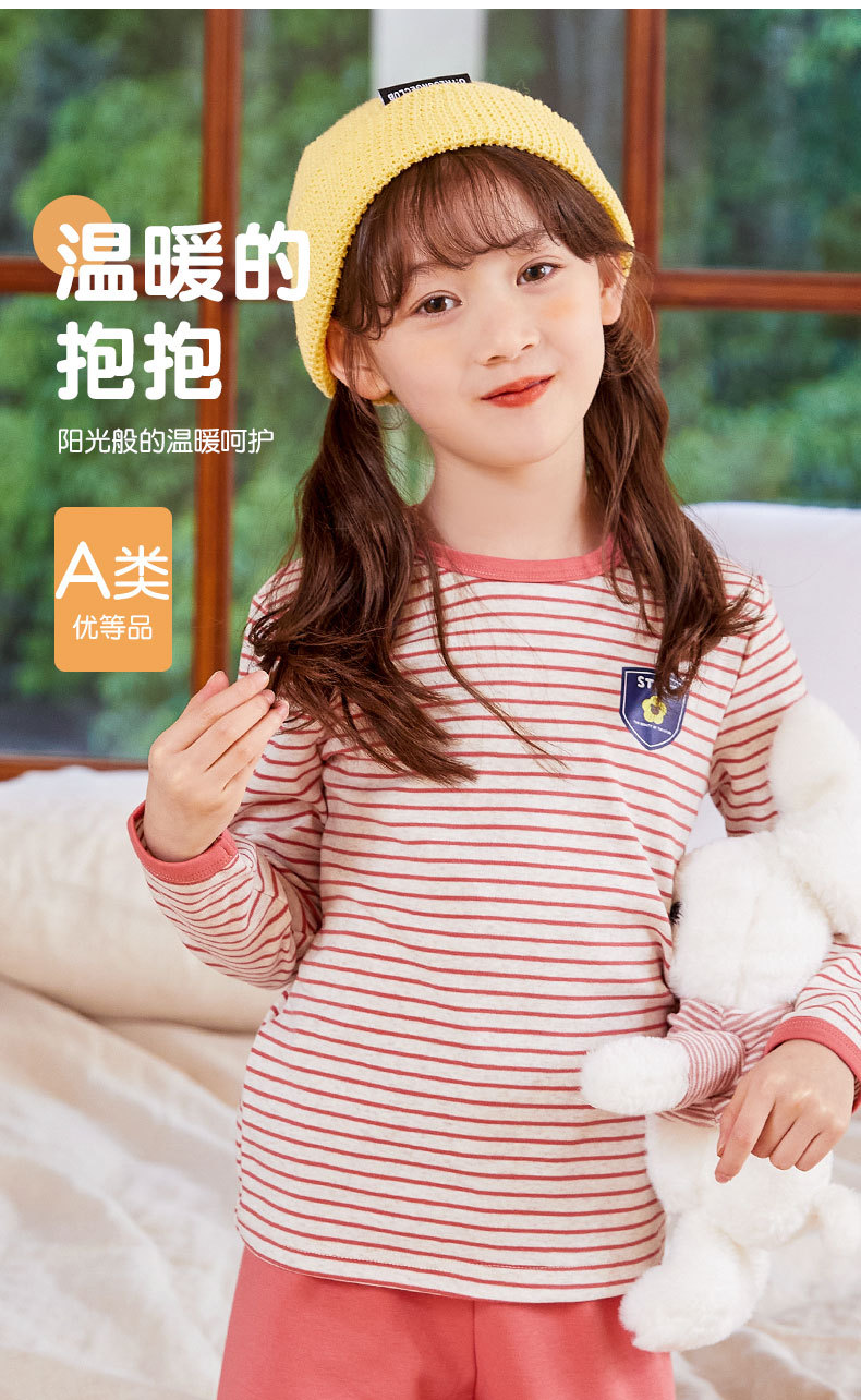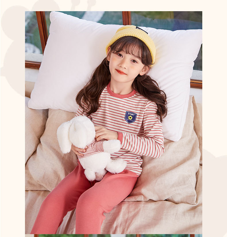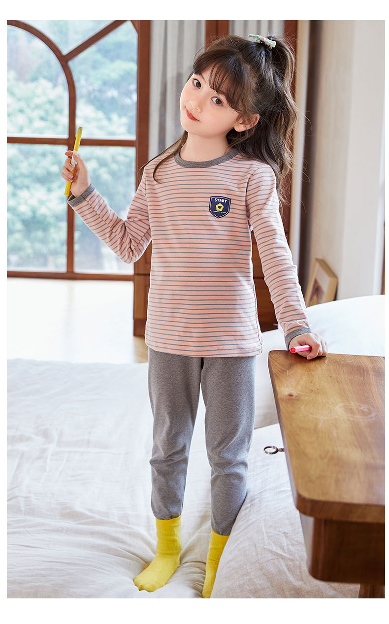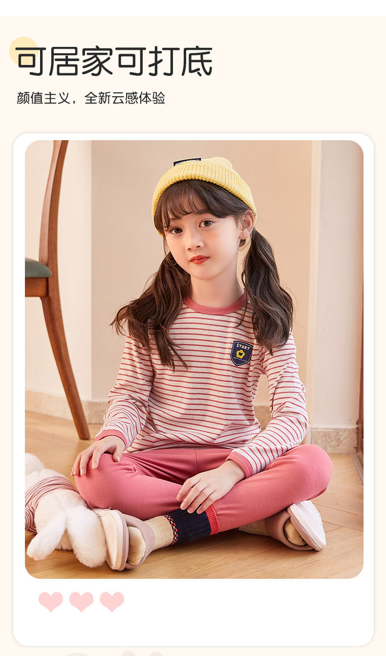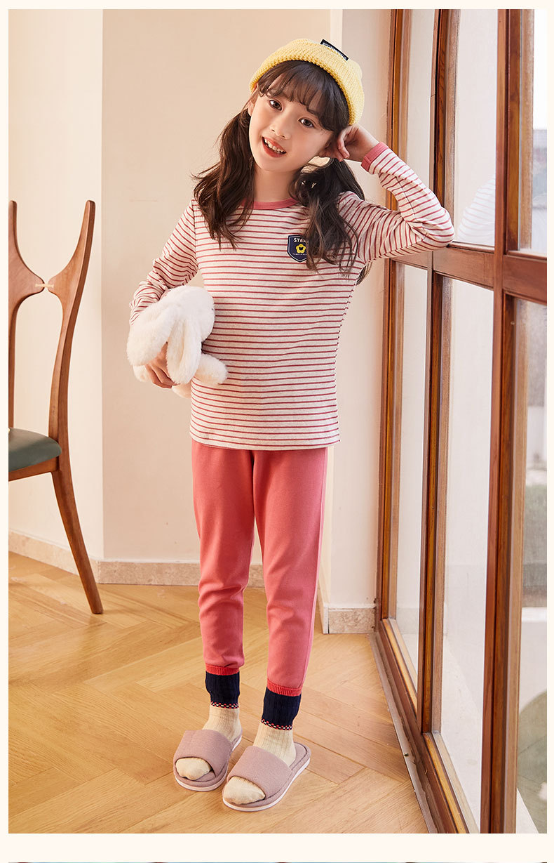 가을 겨울 줄무늬 보온 속옷 세트 어린이용 2025 신상 순면 여아용 가을옷 가을바지 세트 도매스토어 가기