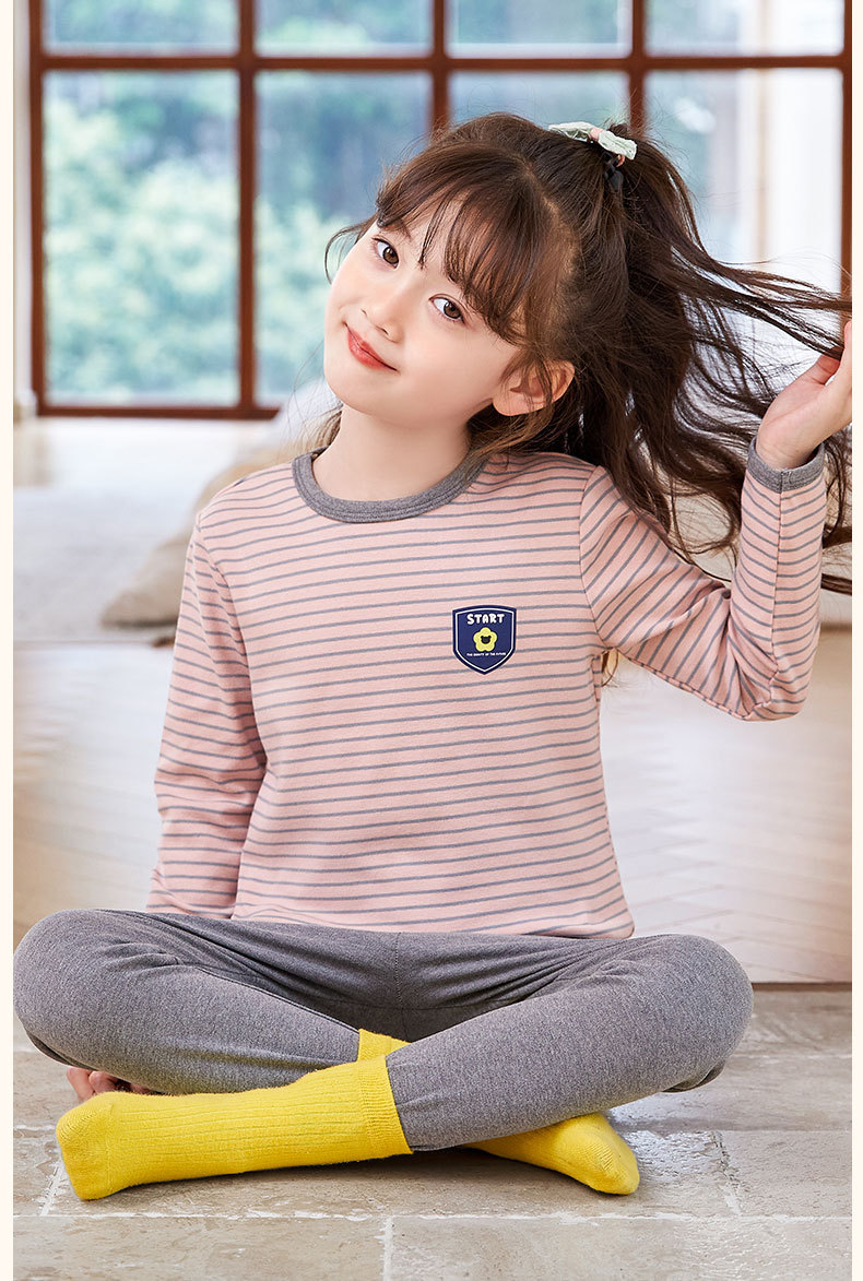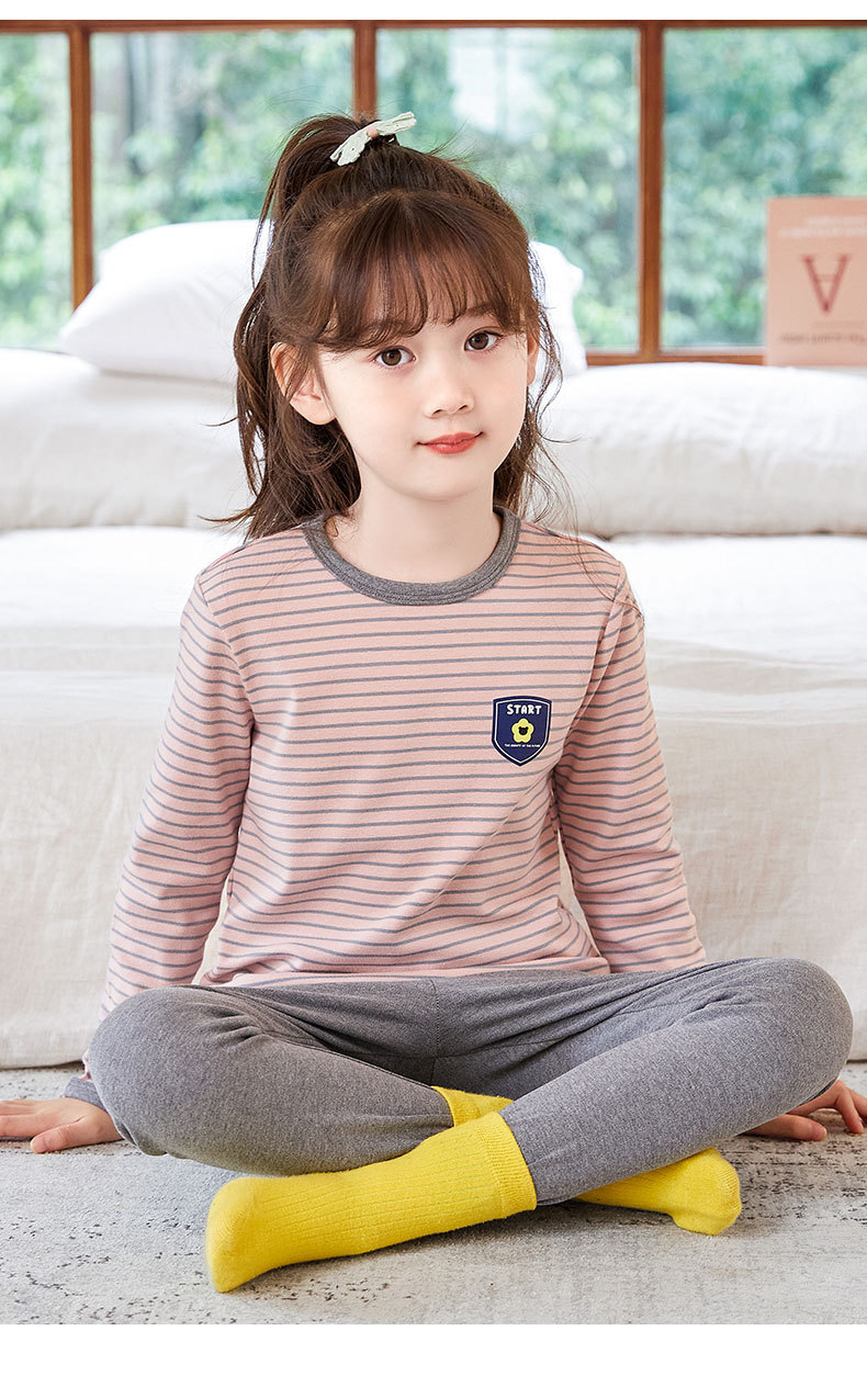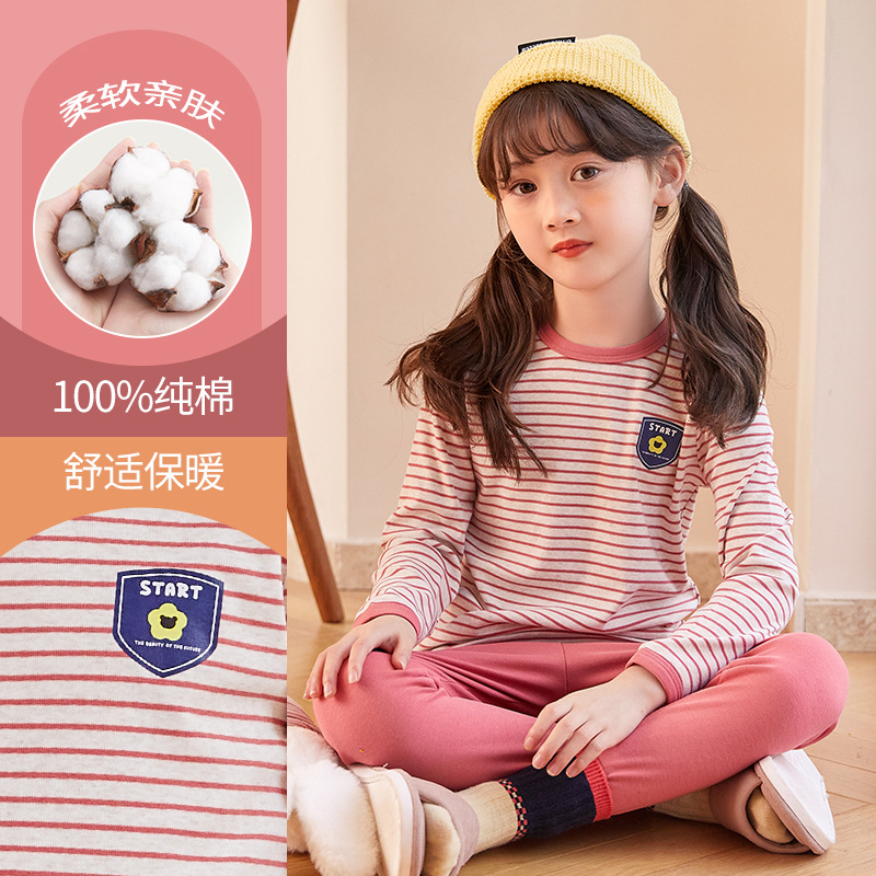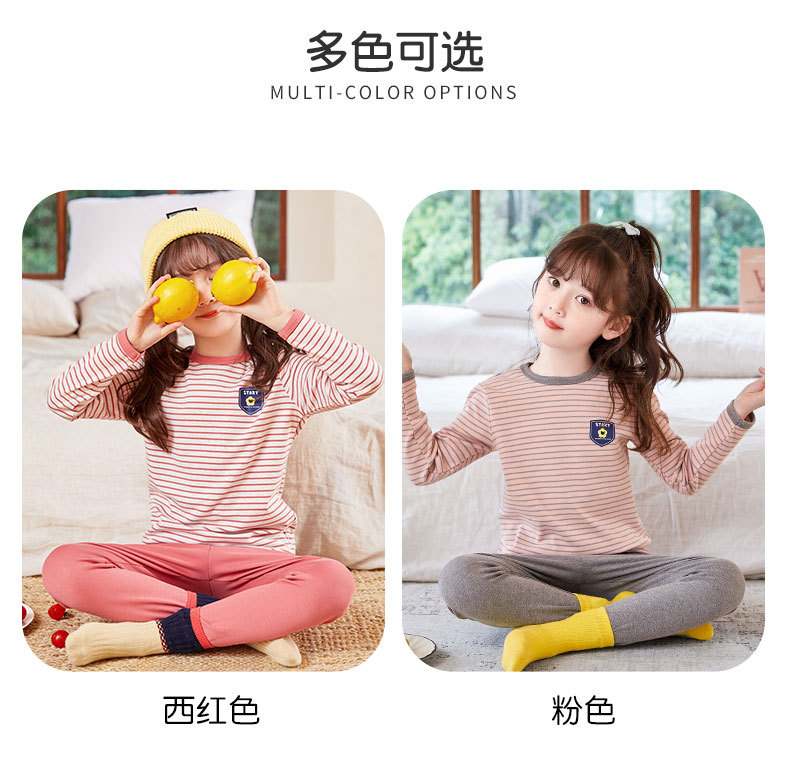 가을 겨울 줄무늬 보온 속옷 세트 어린이용 2025 신상 순면 여아용 가을옷 가을바지 세트 도매
