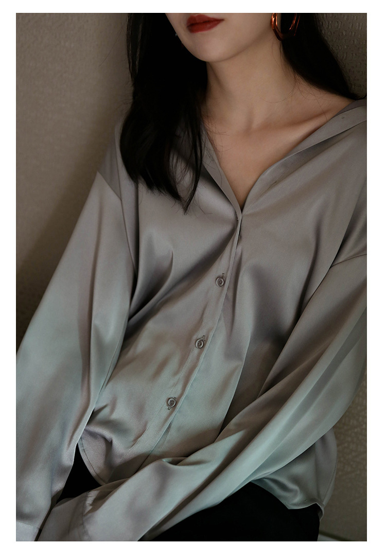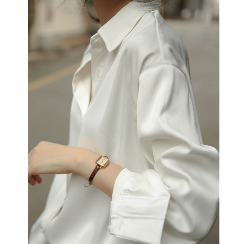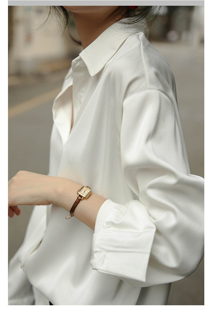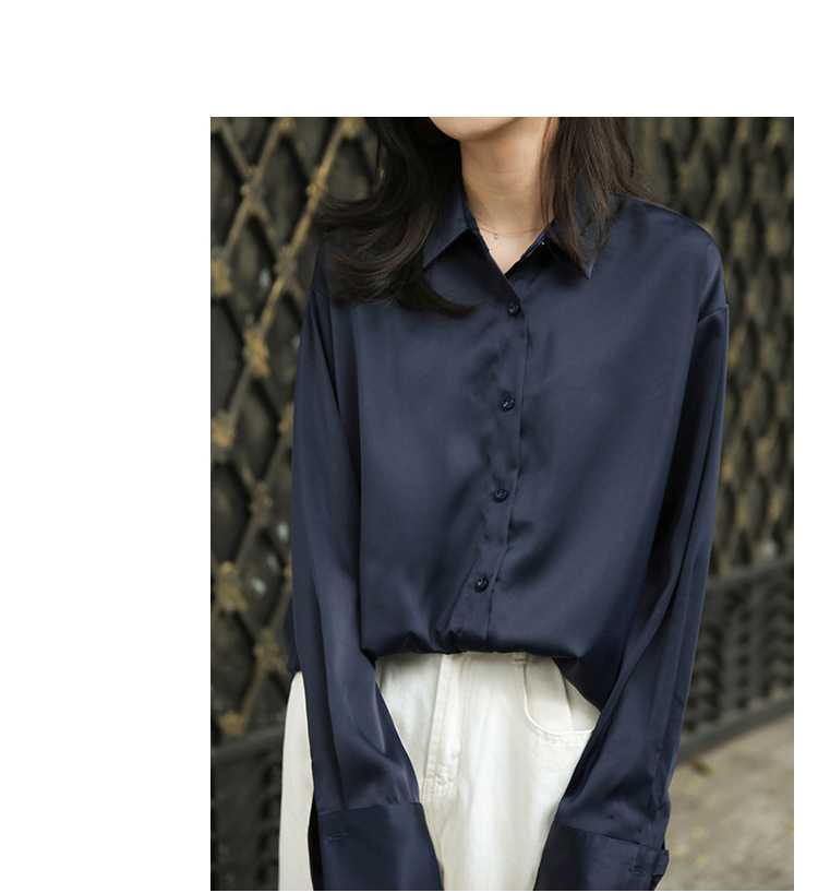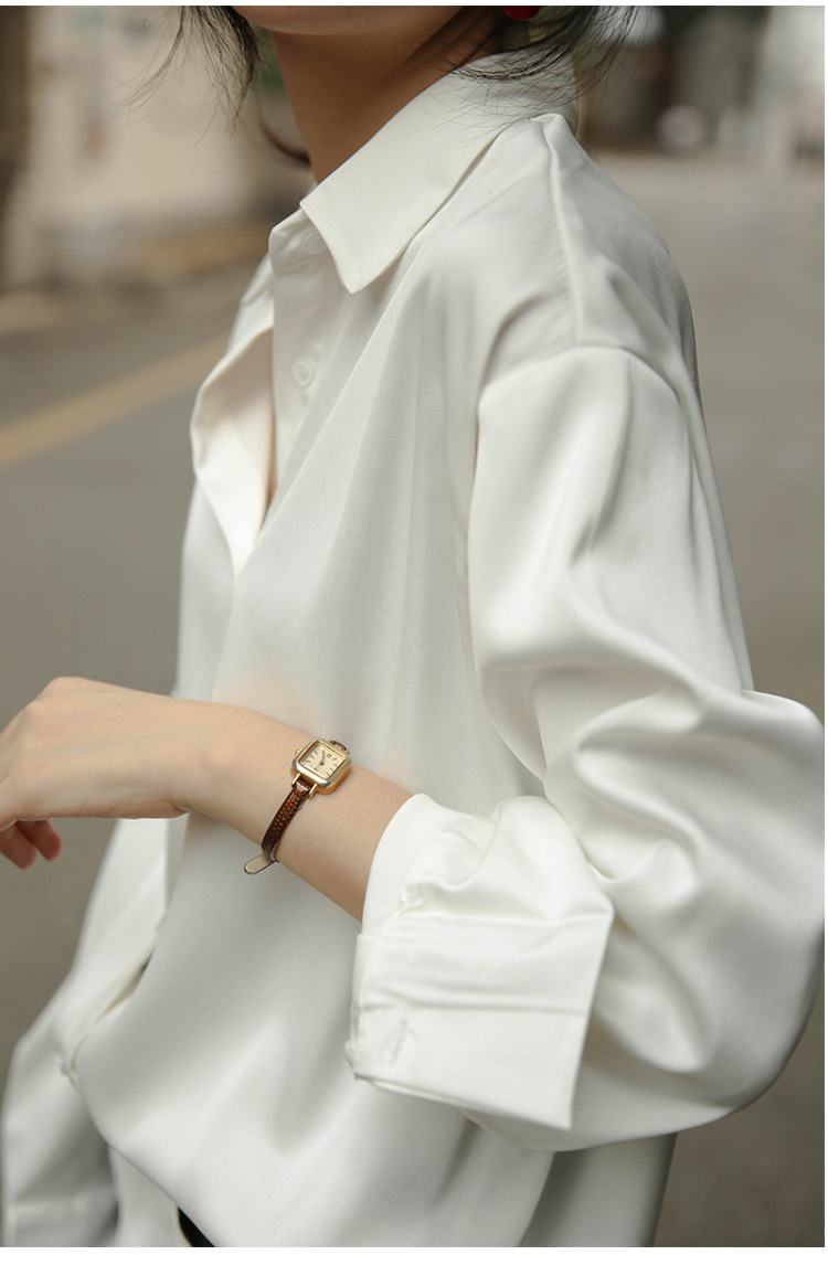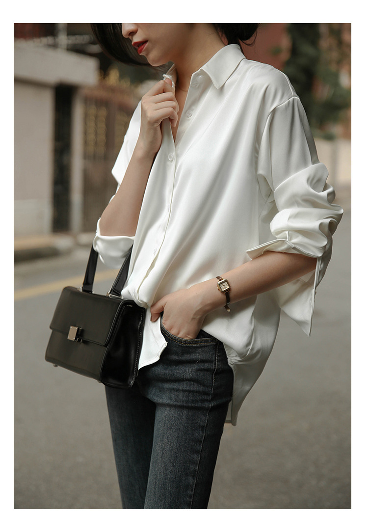 화이트 셔츠 여성의 디자인 감각 작은 스타일 고대 홍콩 스타일 탑 드레이프 셔츠 머서화 새틴 탑 느슨한 한국 스타일 전문가