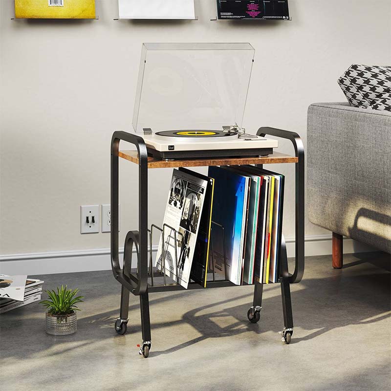 미니 소형 사이드 테이블 비닐 레코드 랙 철 나무 조합 이동식 스토리지 랙 침실 거실 스토리지 랙스토어 가기