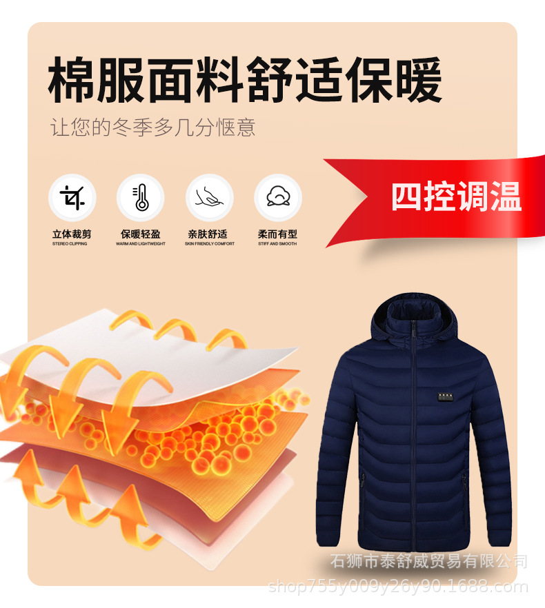 겨울 신상 스마트 난방 면 패딩 재킷 USB 충전 난방 면 패딩 옷 4 컨트롤 23 지역 스마트 따뜻한 난방 면 패딩 옷스토어 가기