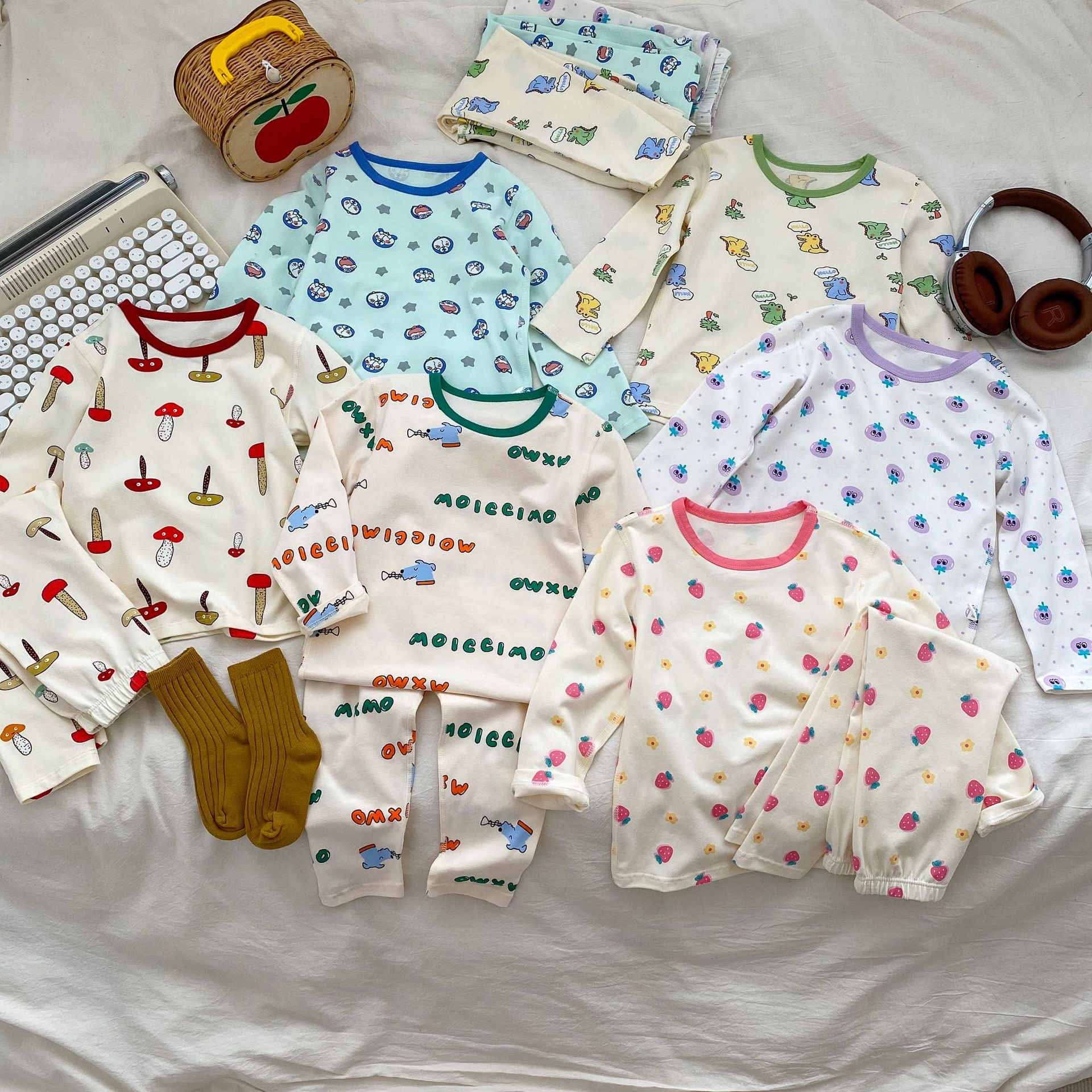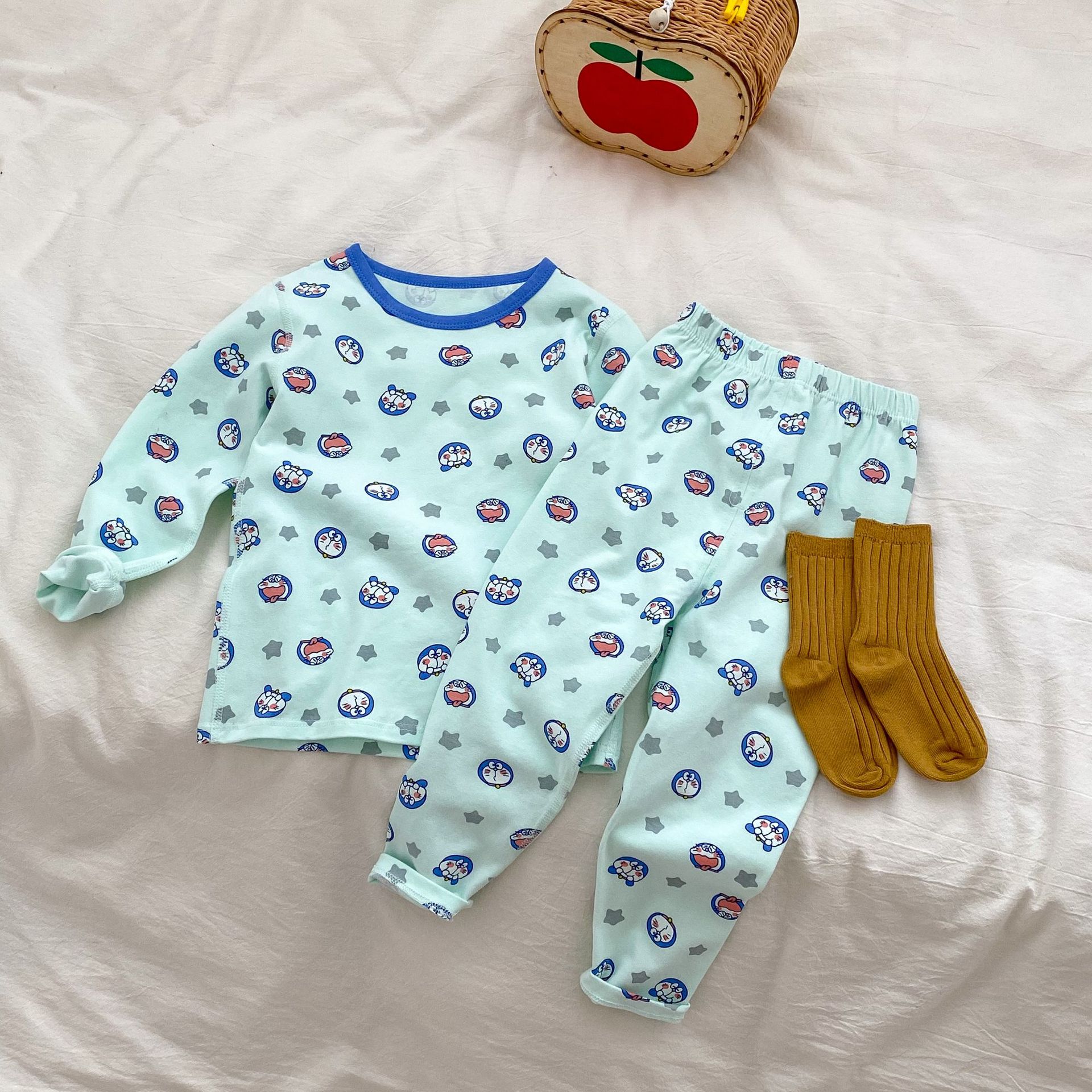 무봉제 홈웨어 2026 가을 겨울 아동용 만화 캐릭터 잠옷 투피스 세트 남아 여아 보온 속옷 세트 가을옷스토어 가기