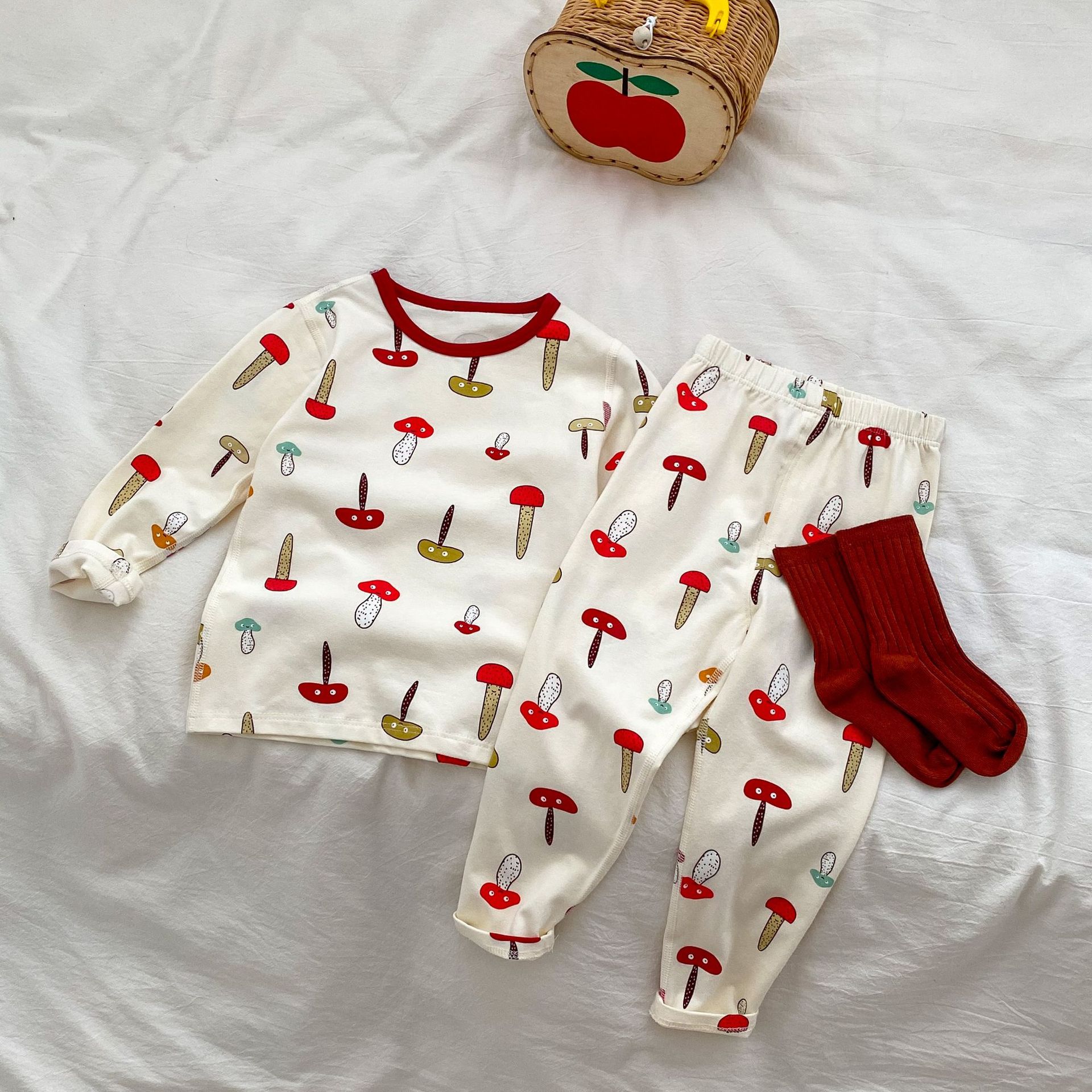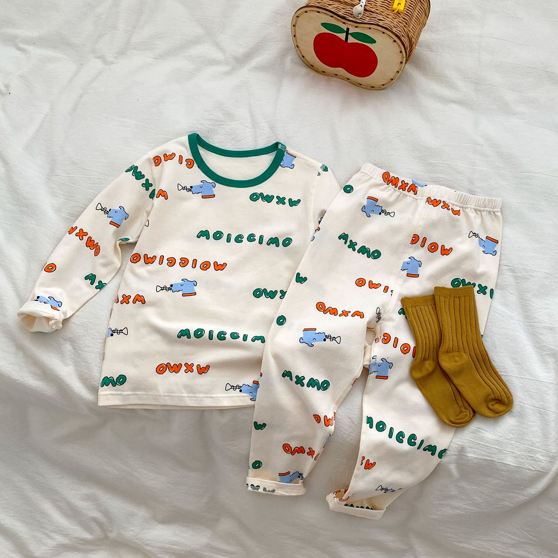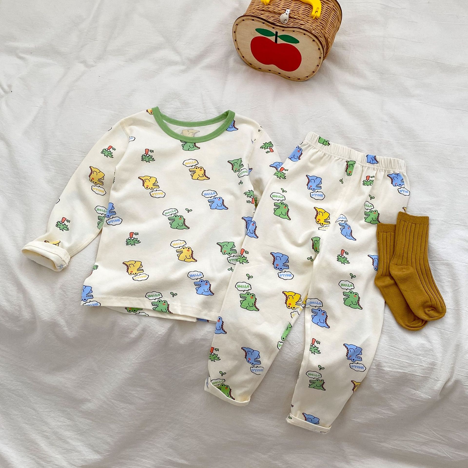 무봉제 홈웨어 2026 가을 겨울 아동용 만화 캐릭터 잠옷 투피스 세트 남아 여아 보온 속옷 세트 가을옷
