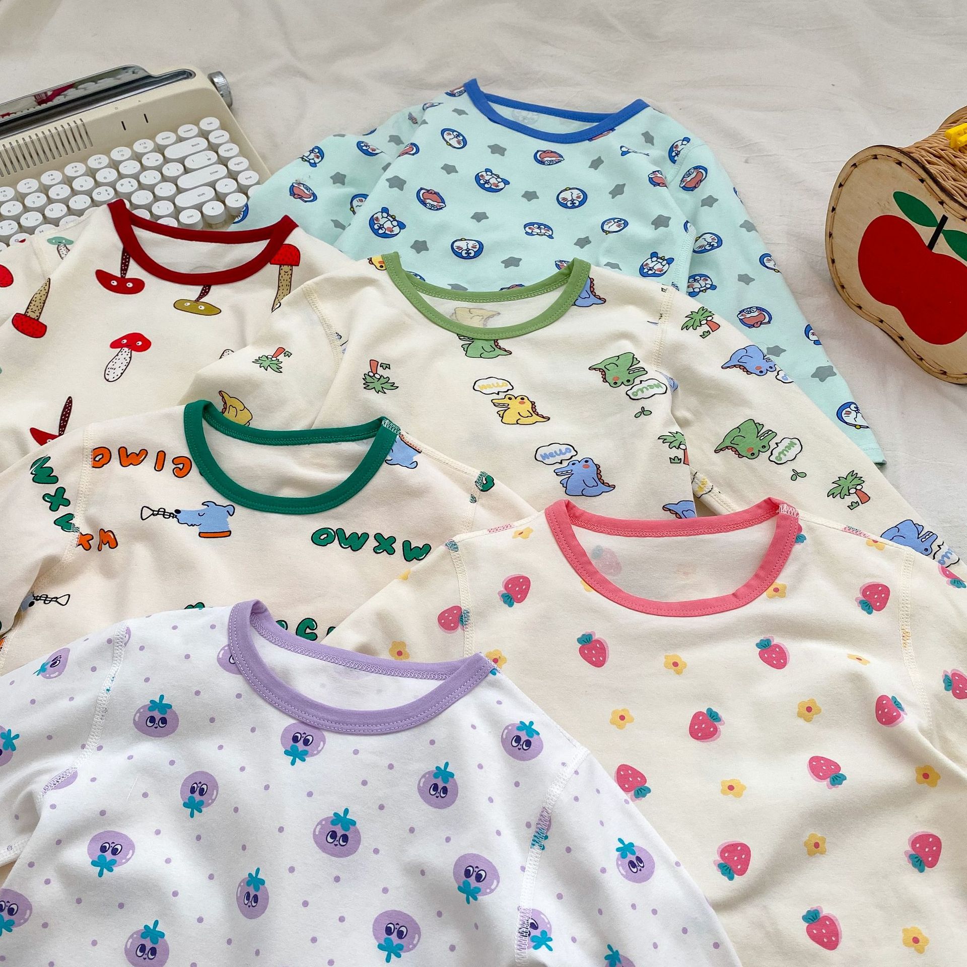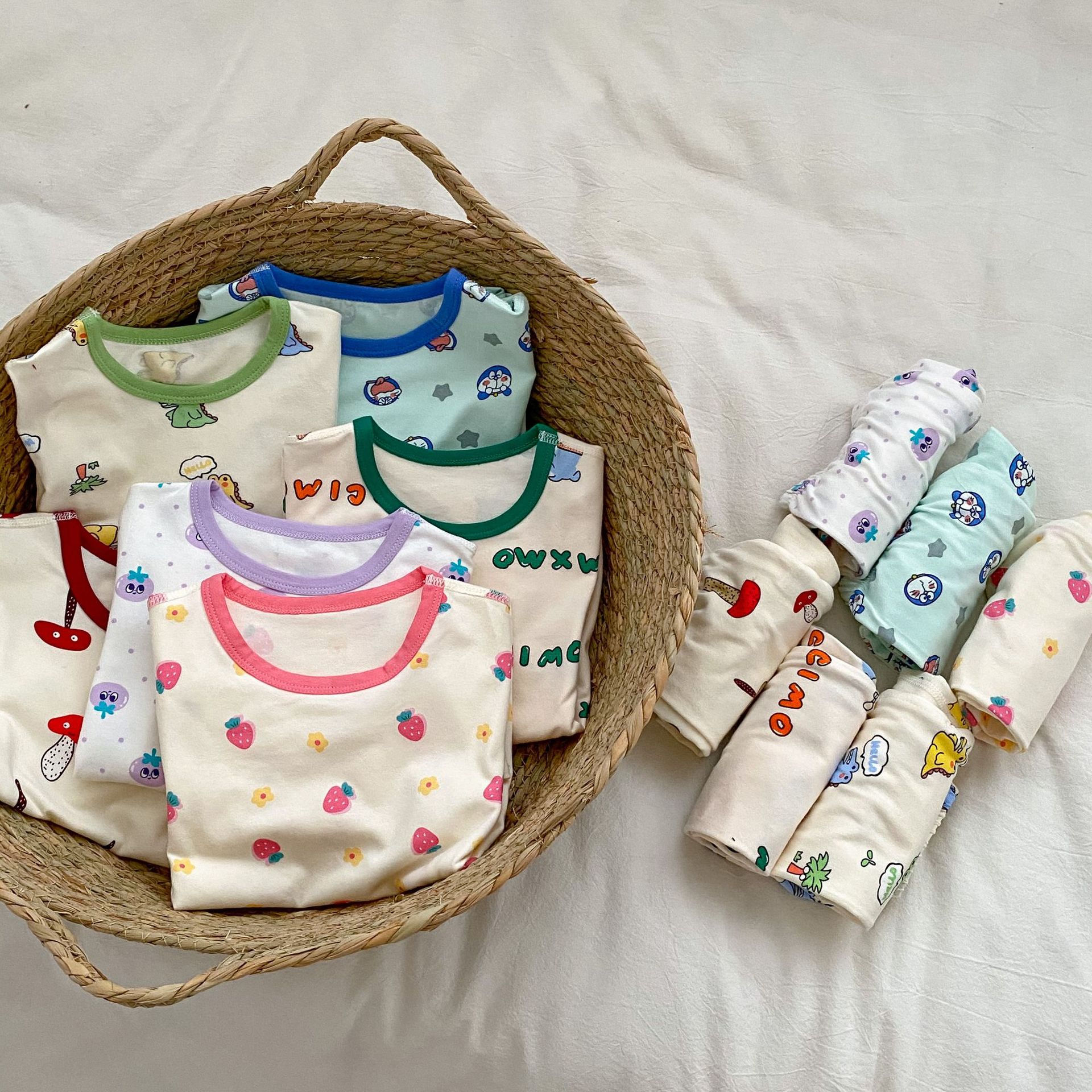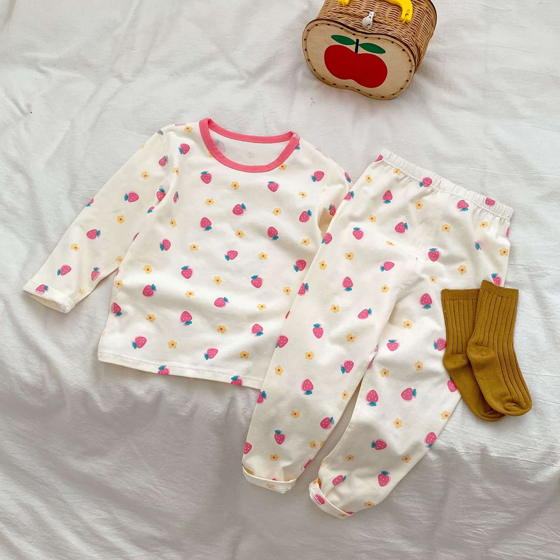 무봉제 홈웨어 2026 가을 겨울 아동용 만화 캐릭터 잠옷 투피스 세트 남아 여아 보온 속옷 세트 가을옷