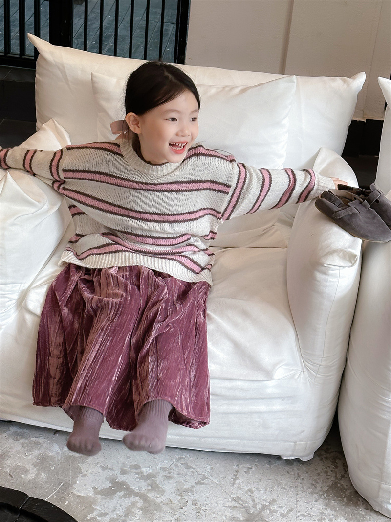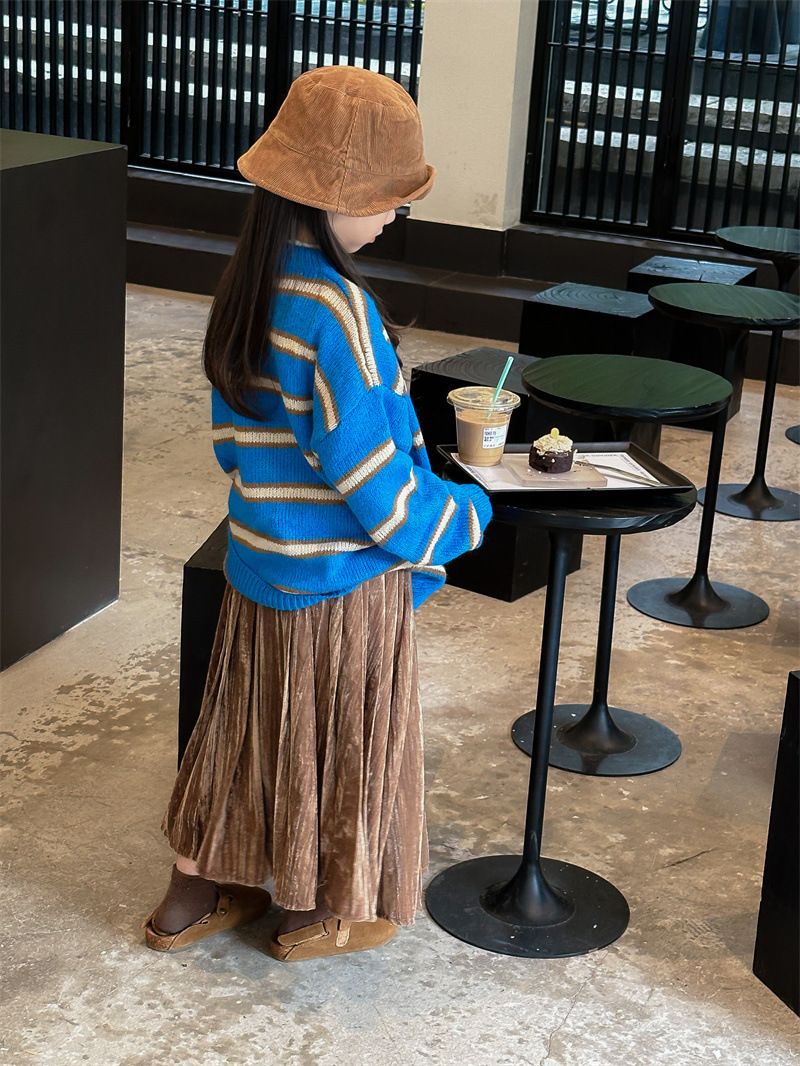 여자의 치마 가을 2023 새로운 스타일 어린이 벨벳 스커트 가을 여자의 단색 유행 치마스토어 가기