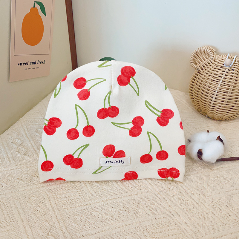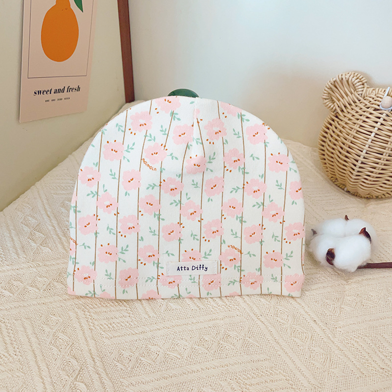 단일 레이어 봄과 가을 통기성 신생아 아기 모자 인쇄 면 어린이 모자 달콤한 따뜻한 풀오버 모자