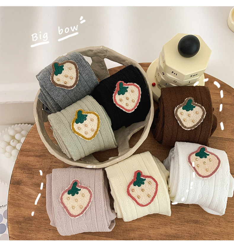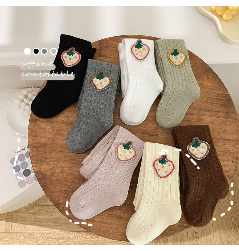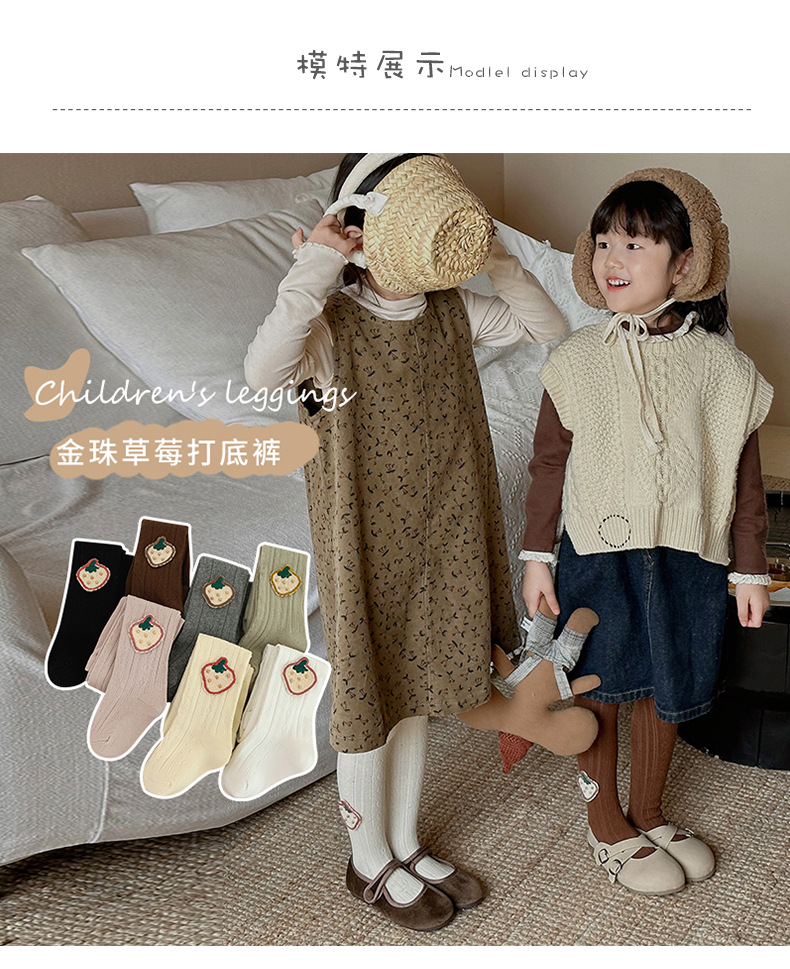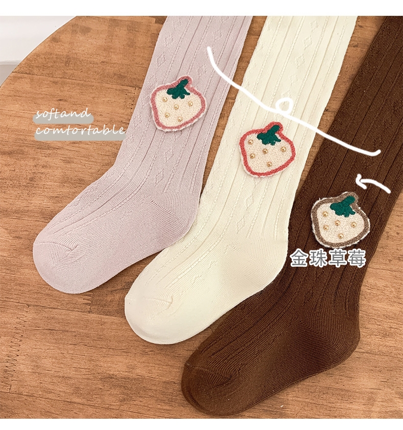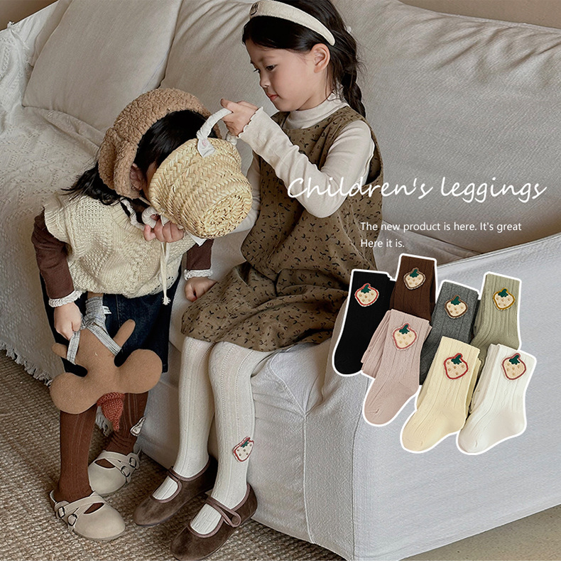 2023 봄과 가을 새로운 클래스 A 면 어린이 레깅스 여자 팬티 스타킹 다이아몬드 리벳 딸기 LG206스토어 가기