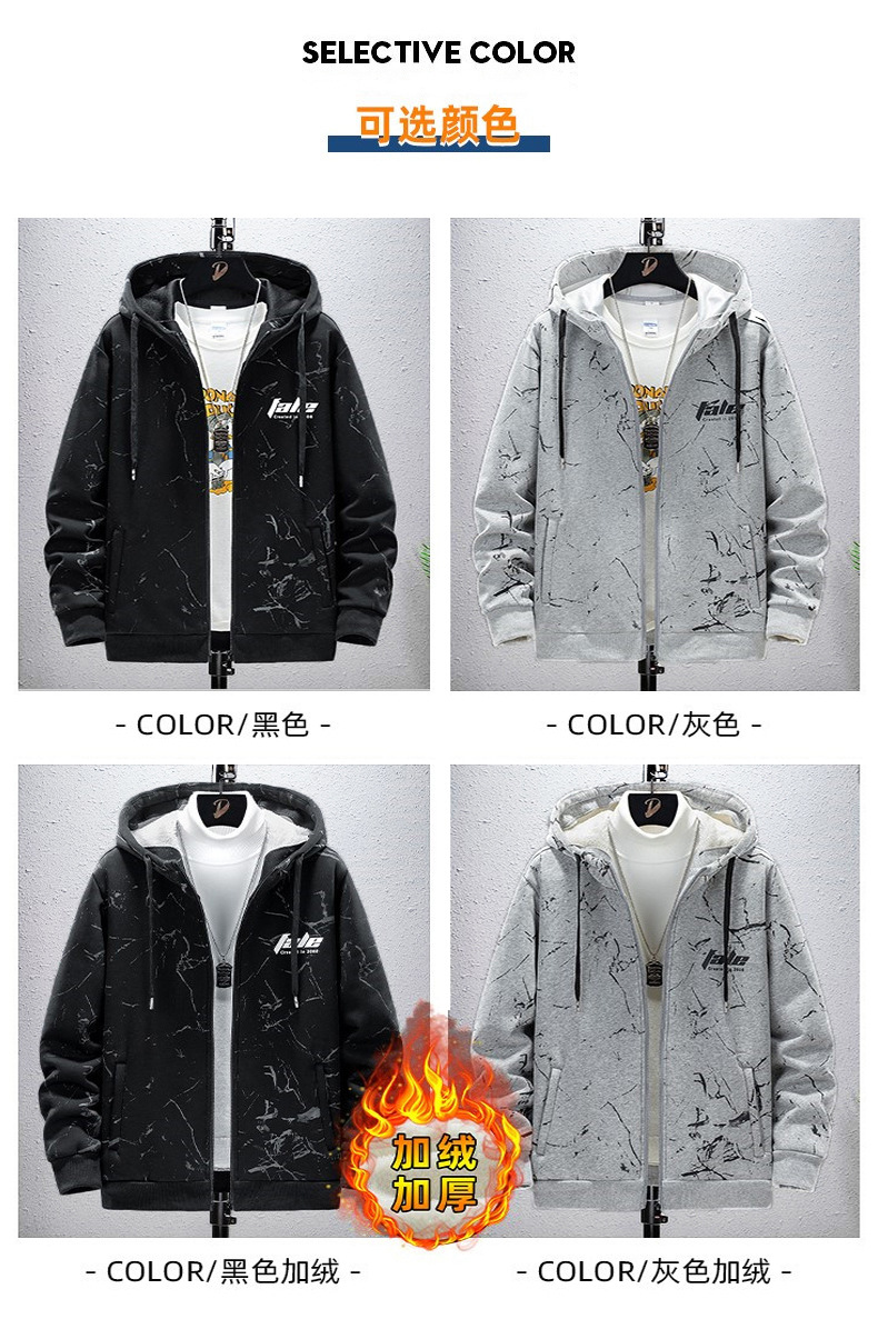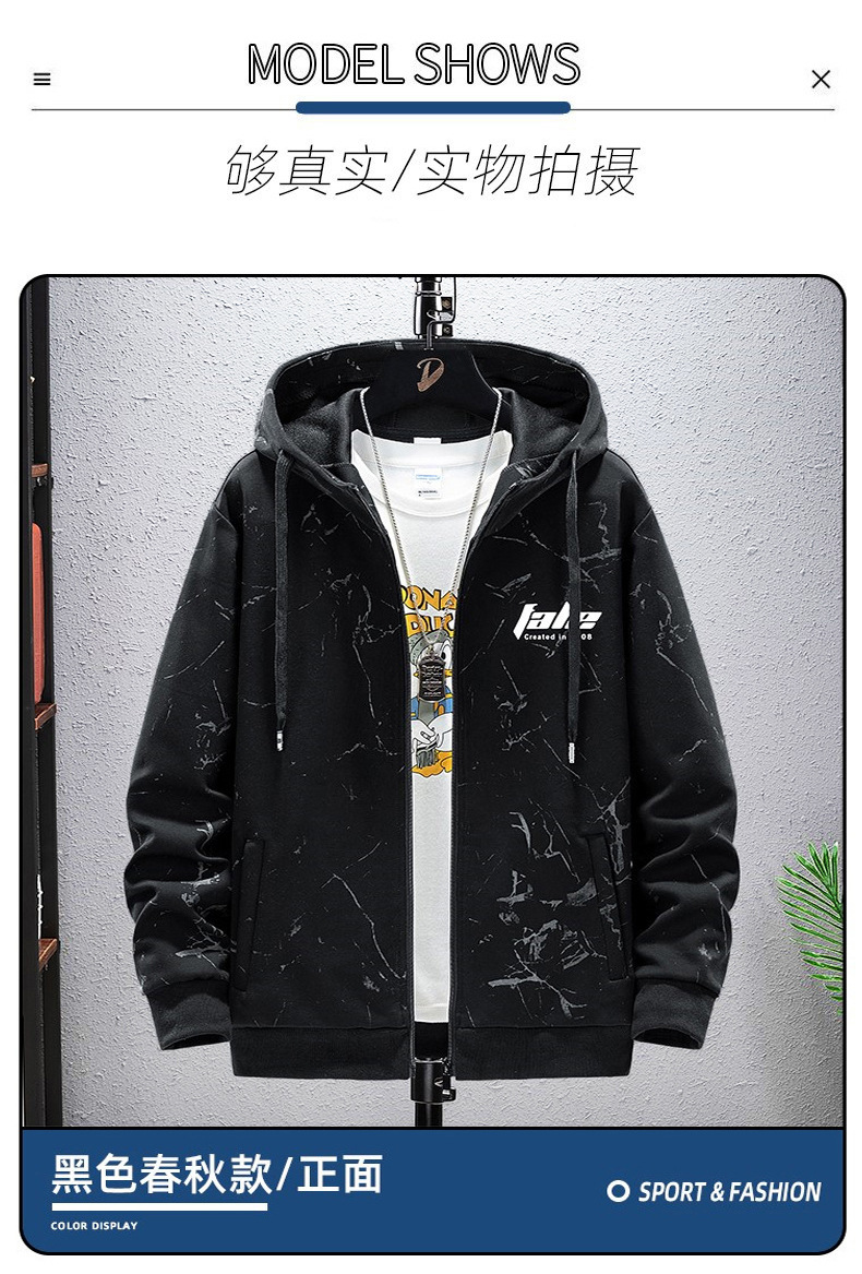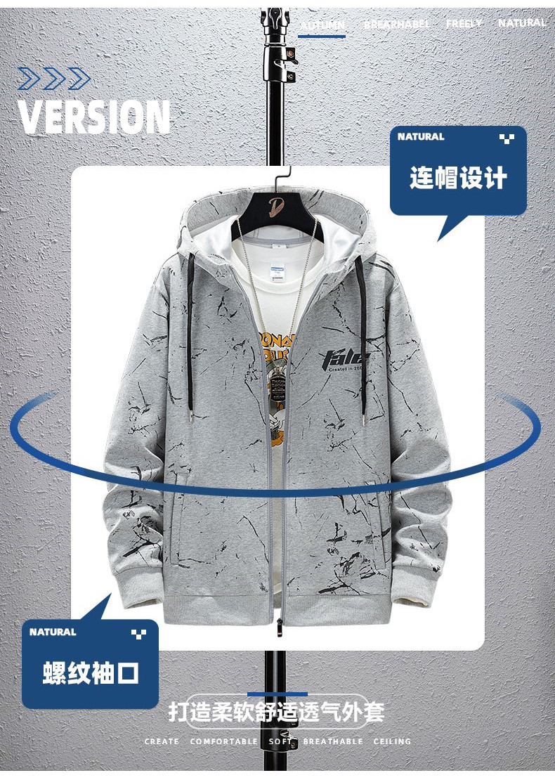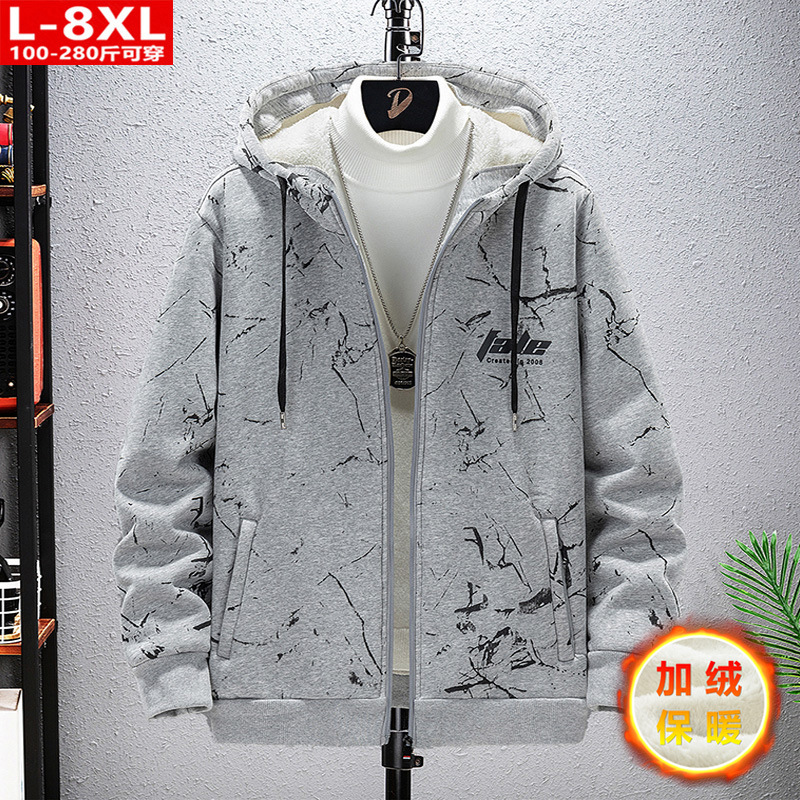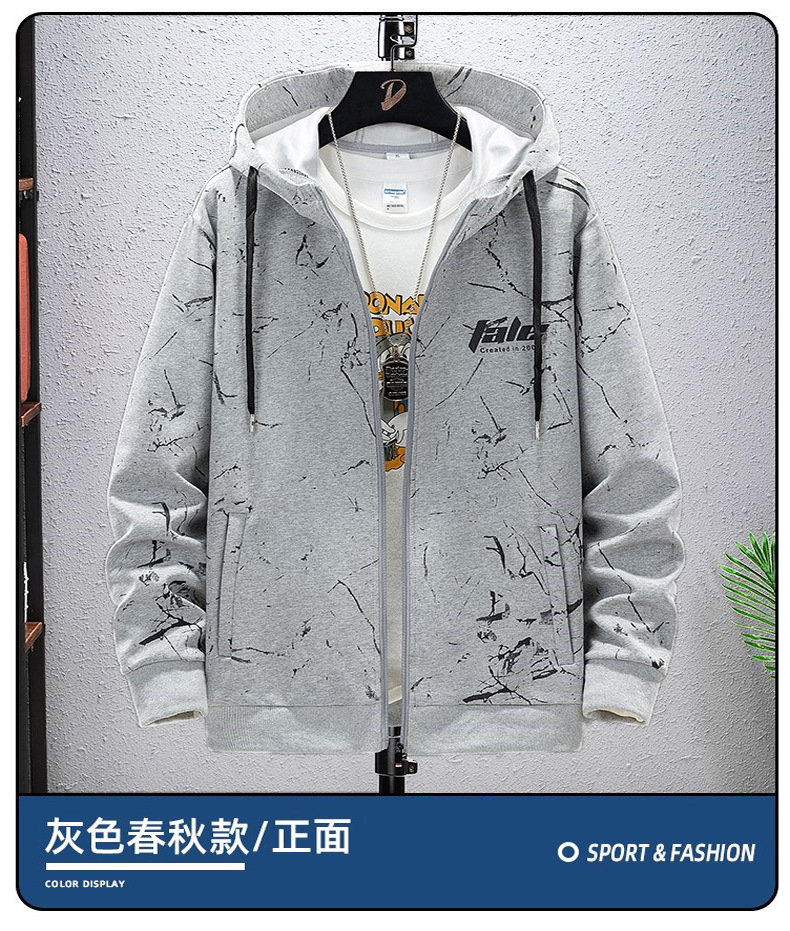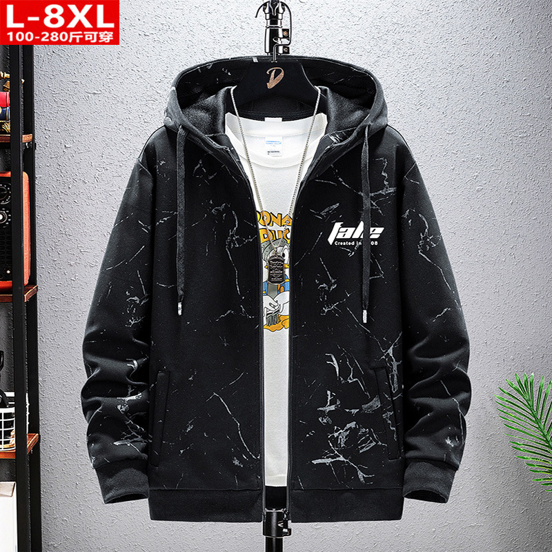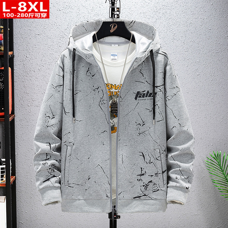 뚱뚱한 플러스 사이즈 유행 남자의 잘 생긴 인쇄 순면 후드 재킷 봄과 가을 뚱뚱한 남자 느슨한 캐주얼 재킷