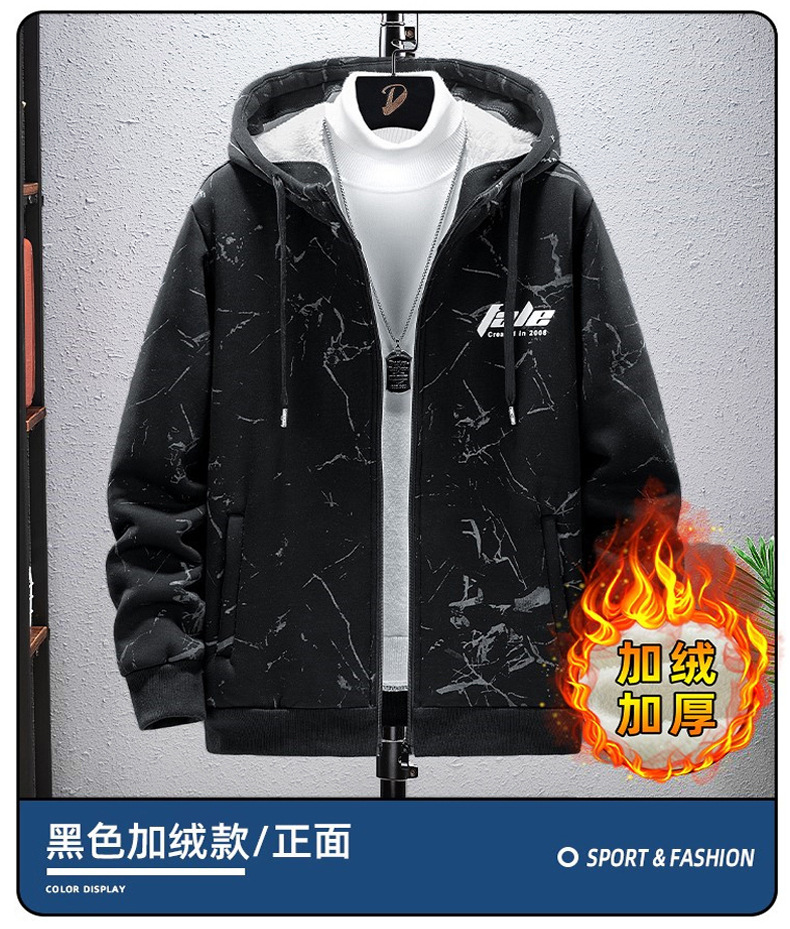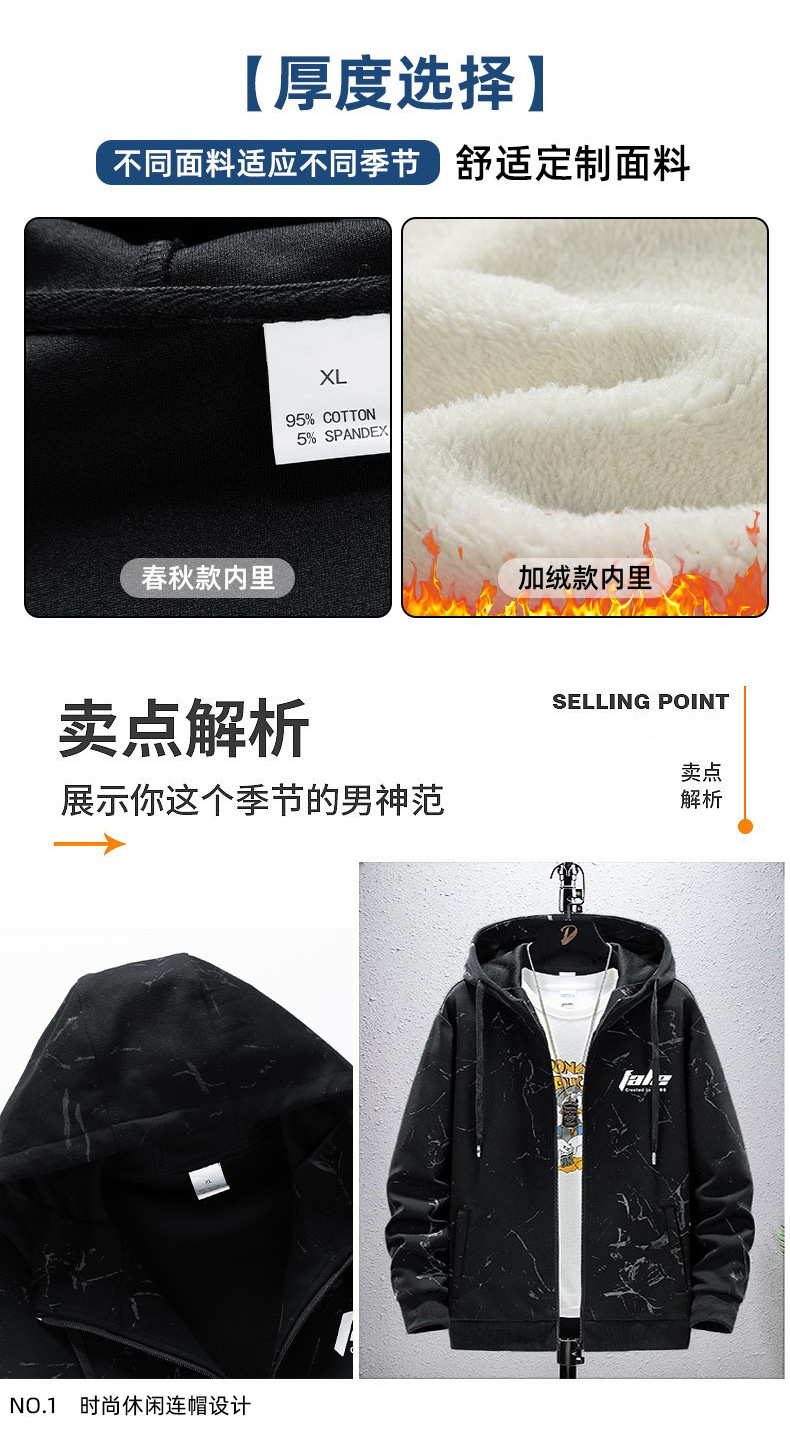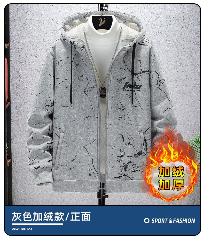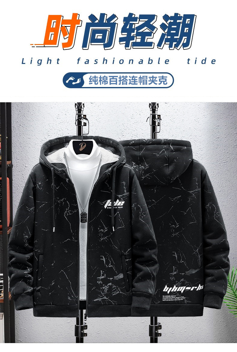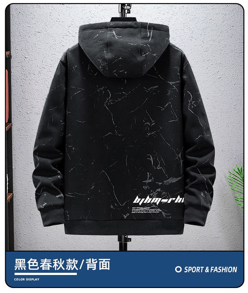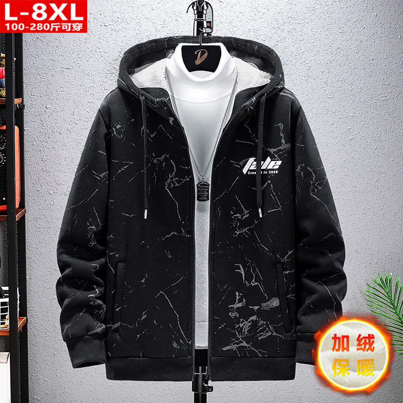 뚱뚱한 플러스 사이즈 유행 남자의 잘 생긴 인쇄 순면 후드 재킷 봄과 가을 뚱뚱한 남자 느슨한 캐주얼 재킷