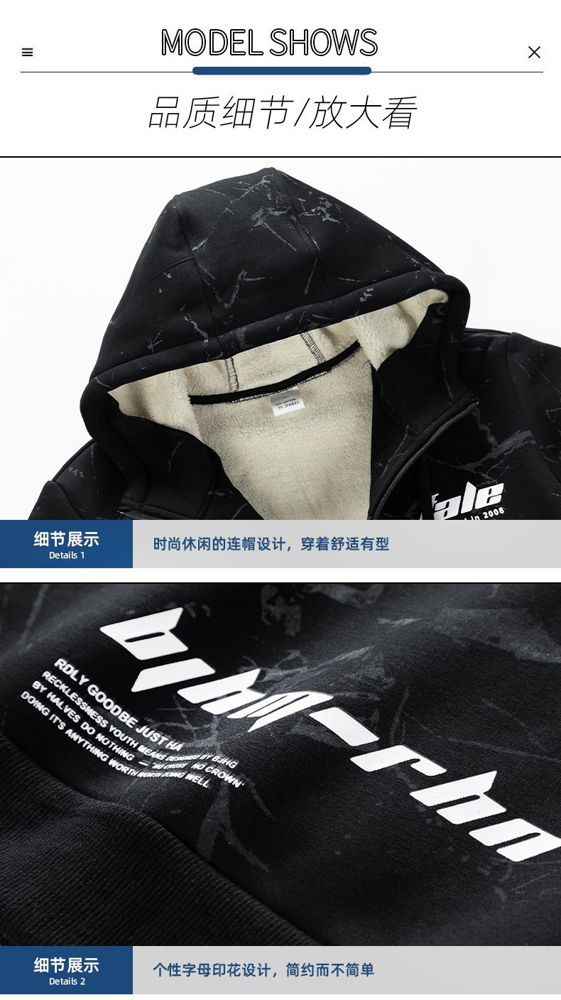 뚱뚱한 플러스 사이즈 유행 남자의 잘 생긴 인쇄 순면 후드 재킷 봄과 가을 뚱뚱한 남자 느슨한 캐주얼 재킷스토어 가기