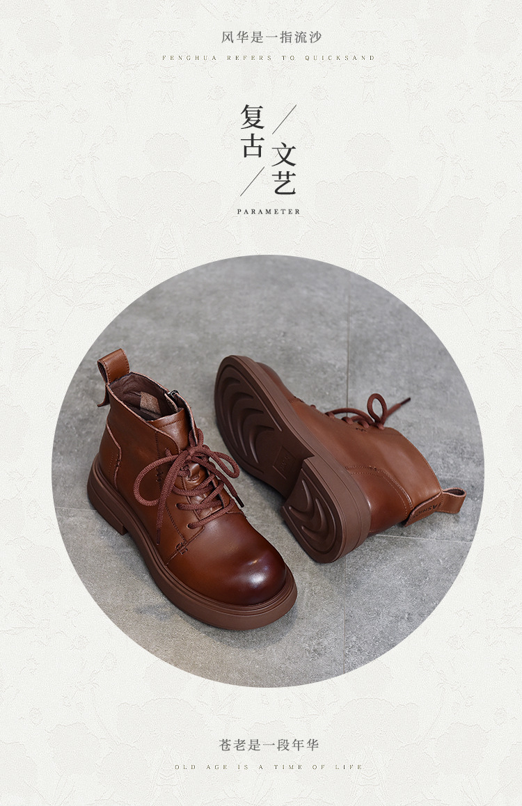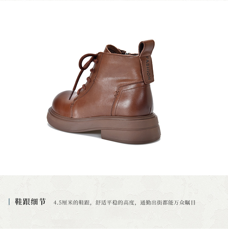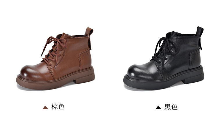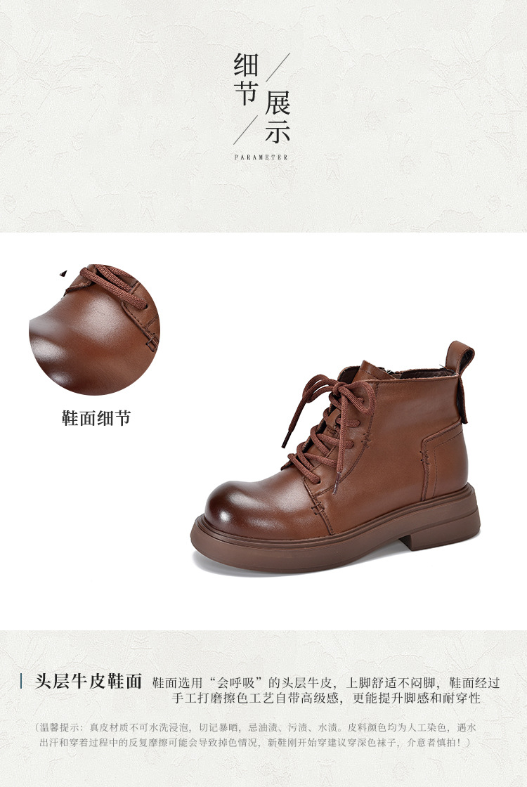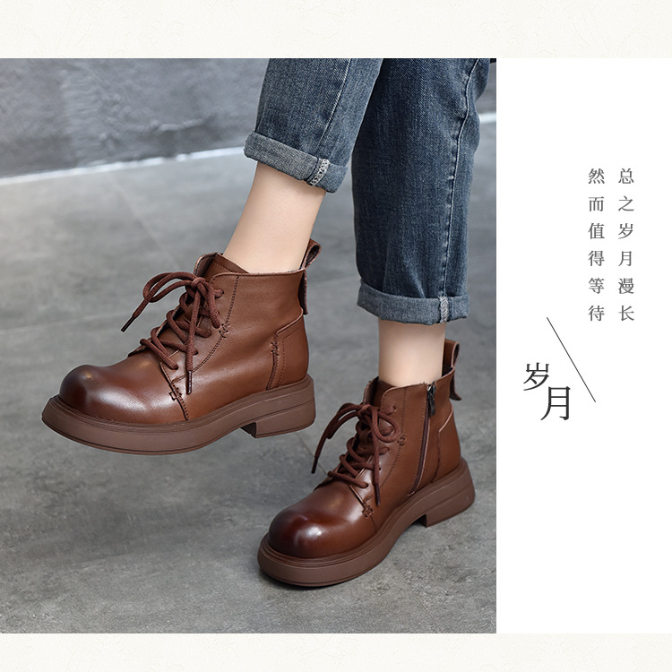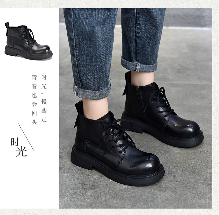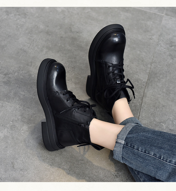 【특가 138】여성용 천연 가죽 숏부츠 봄 가을용 싱글 부츠 천연 소가죽 사이드 지퍼 미드힐 마틴 부츠 여성용스토어 가기
