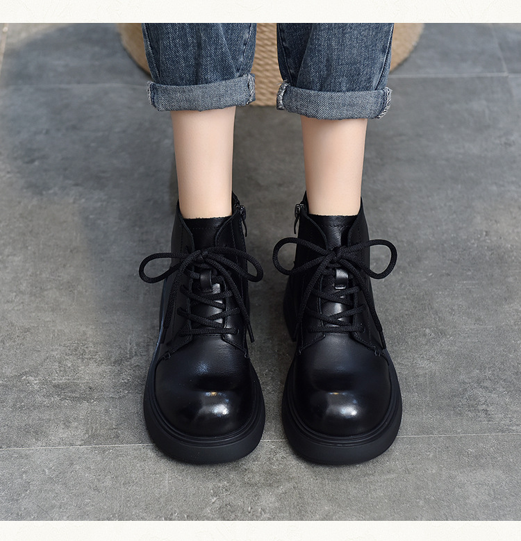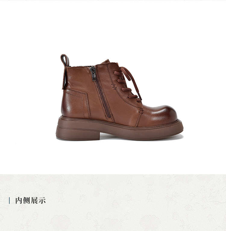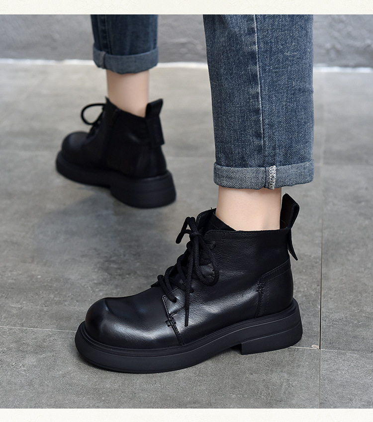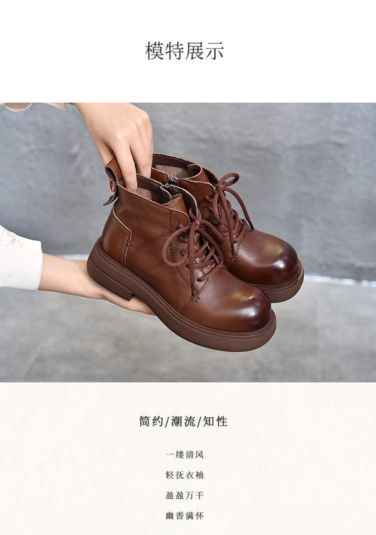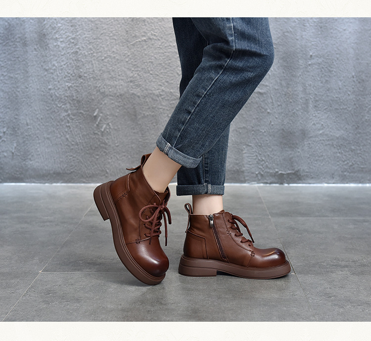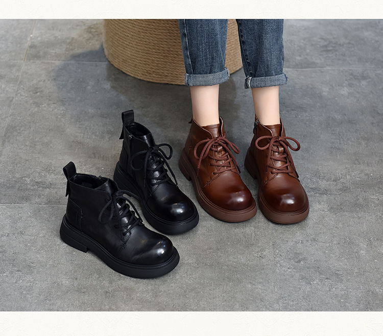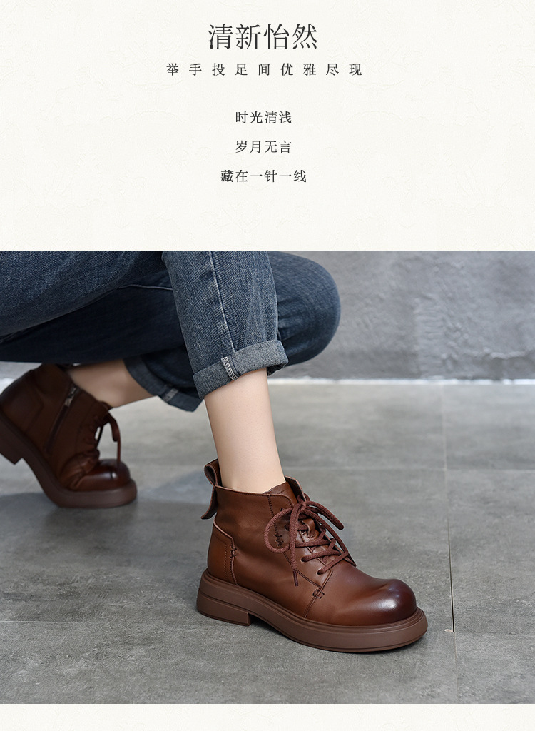 【특가 138】여성용 천연 가죽 숏부츠 봄 가을용 싱글 부츠 천연 소가죽 사이드 지퍼 미드힐 마틴 부츠 여성용스토어 가기