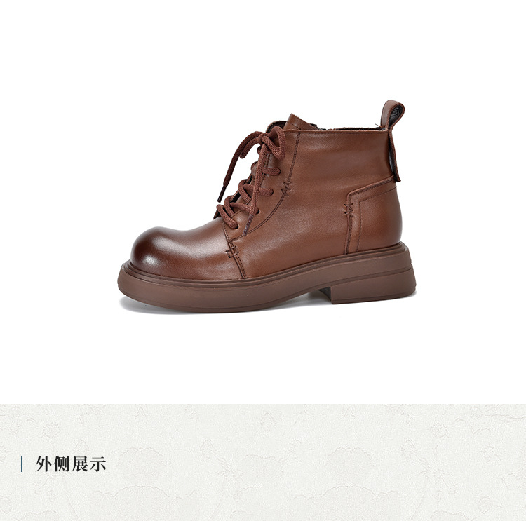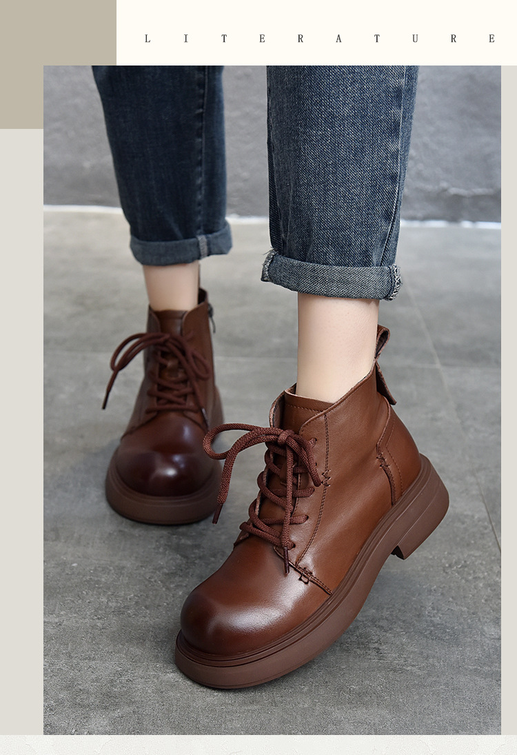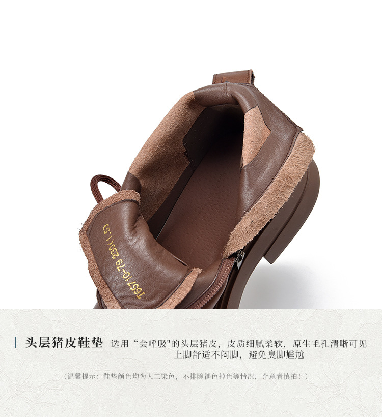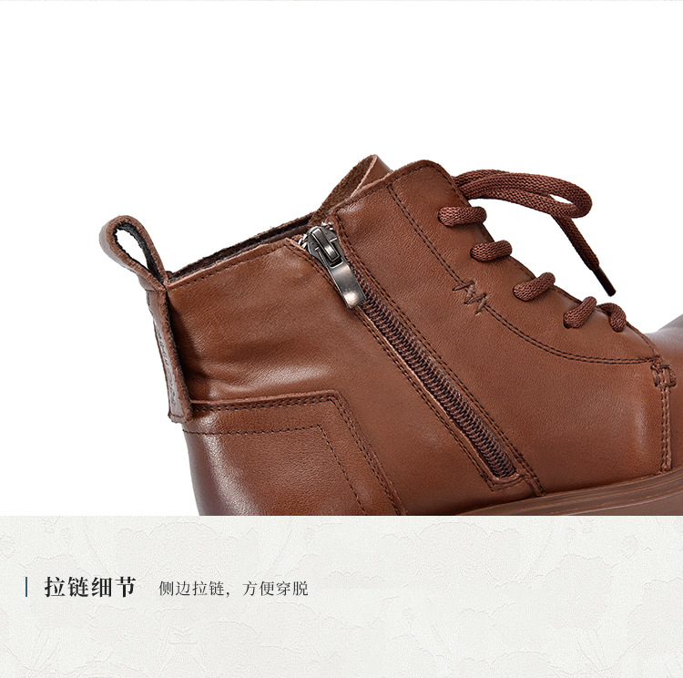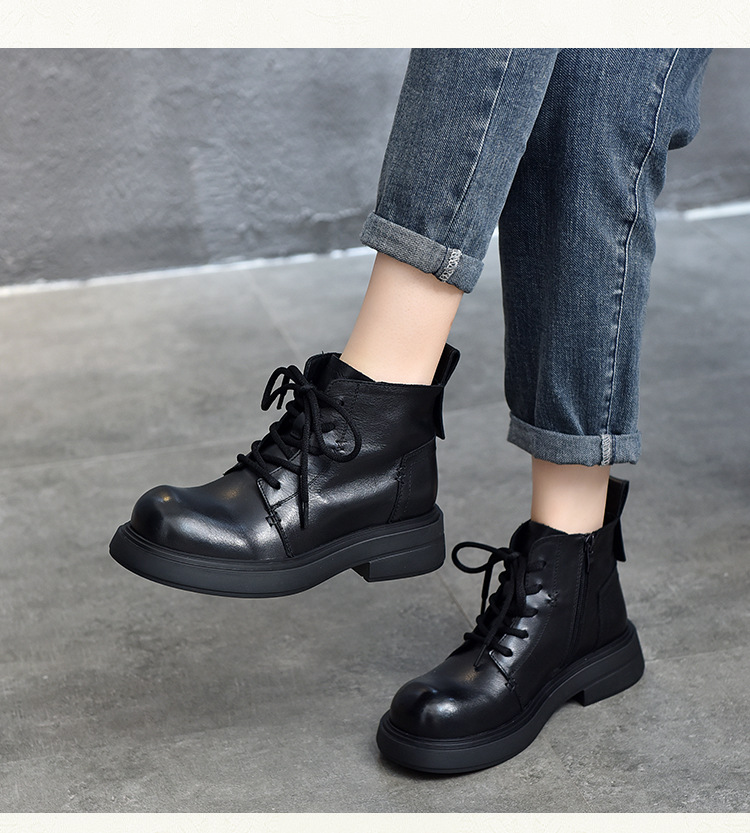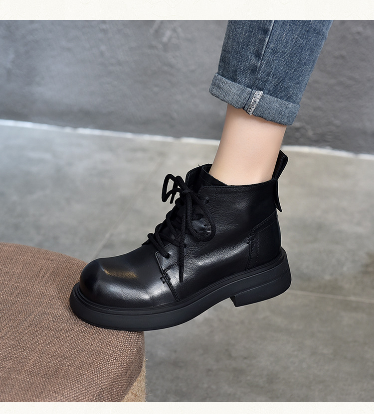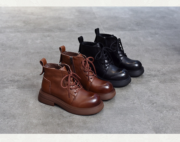 【특가 138】여성용 천연 가죽 숏부츠 봄 가을용 싱글 부츠 천연 소가죽 사이드 지퍼 미드힐 마틴 부츠 여성용스토어 가기