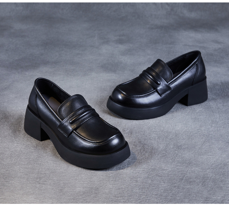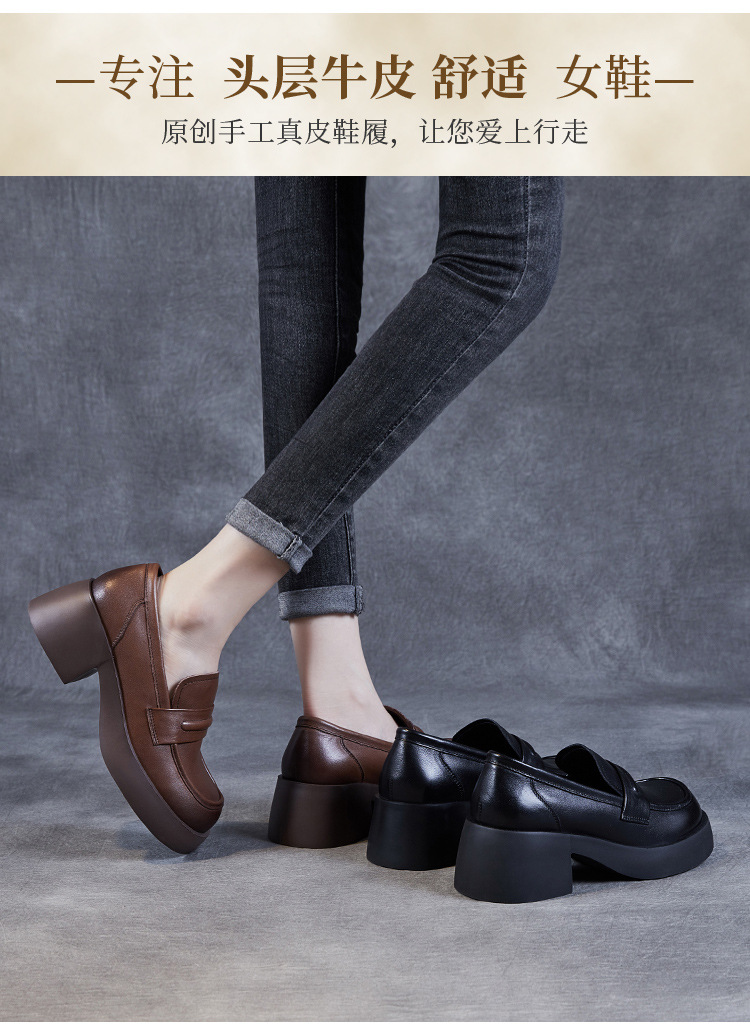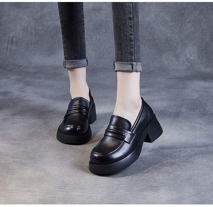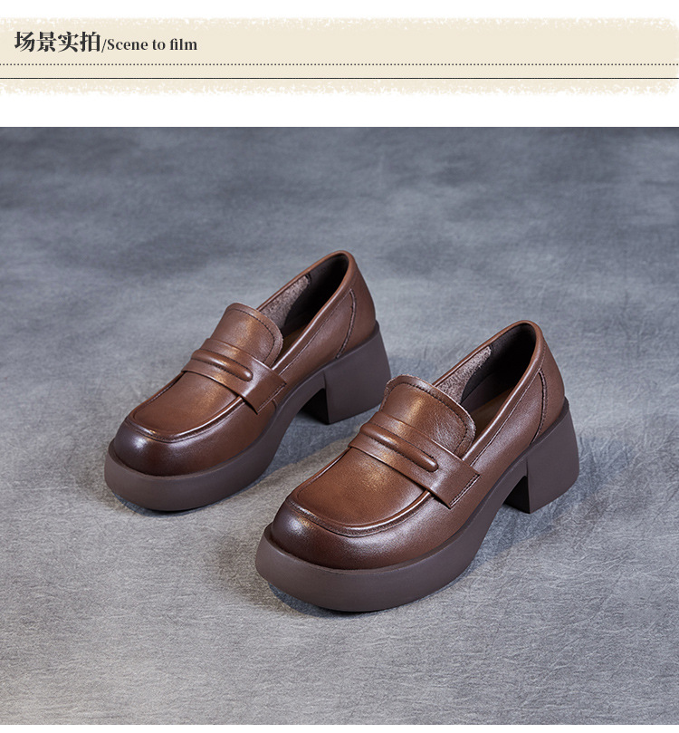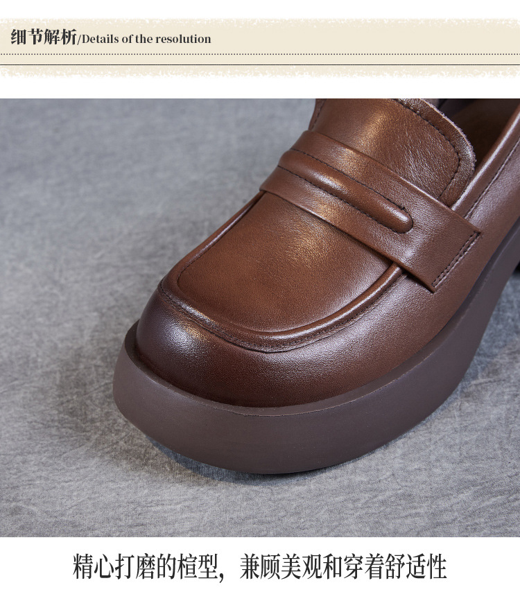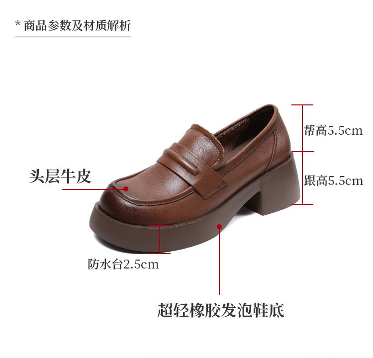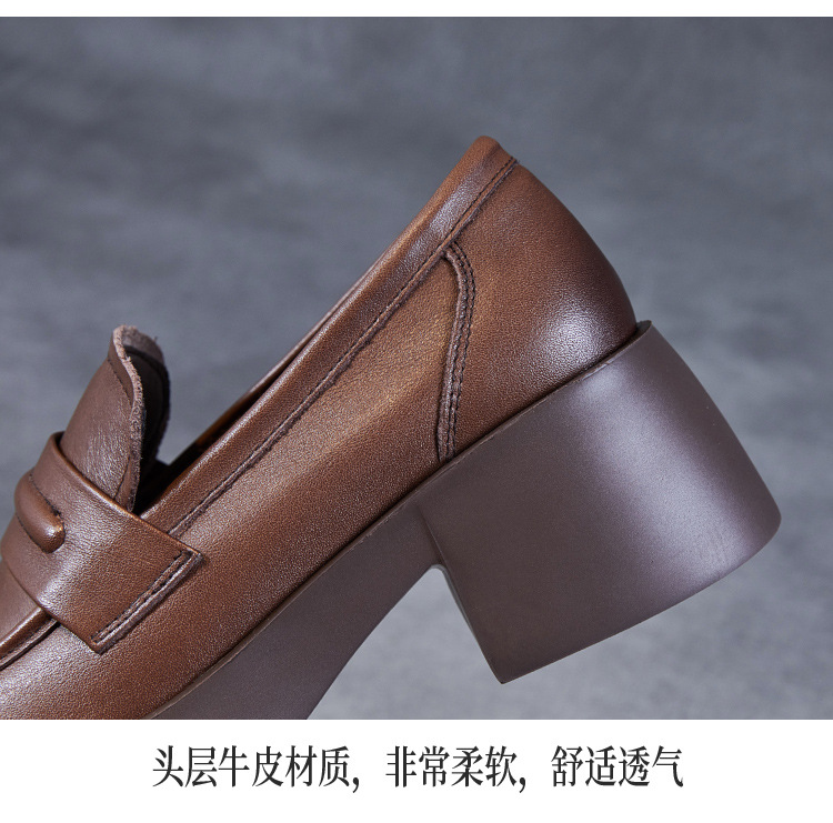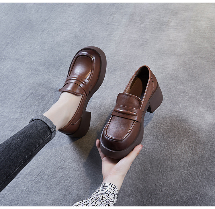 1 층 진짜 소가죽 두꺼운 밑창 큰 머리 영국 작은 가죽 신발 여성 신발 2023 새로운 가을 한 걸음 Lefu 신발스토어 가기