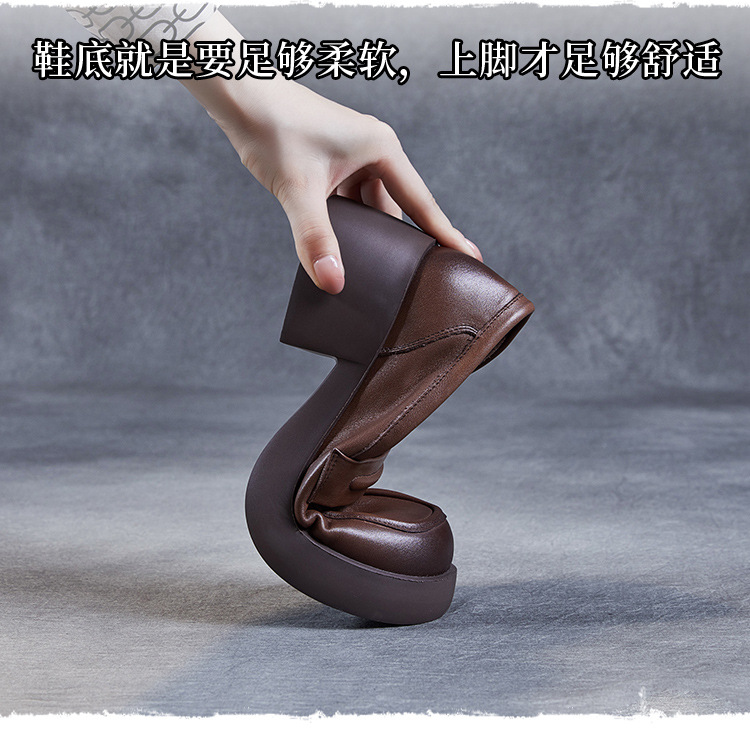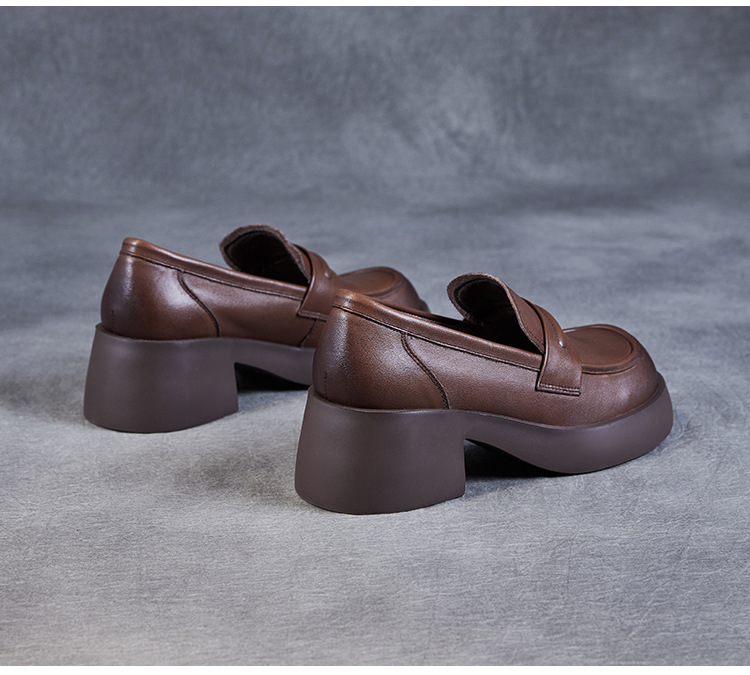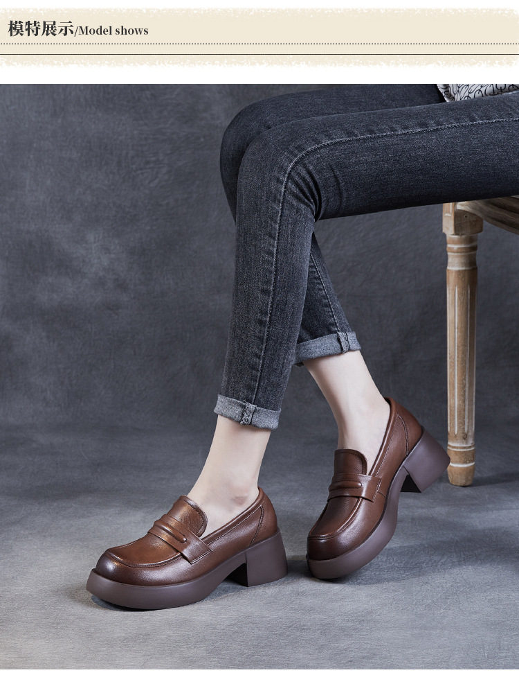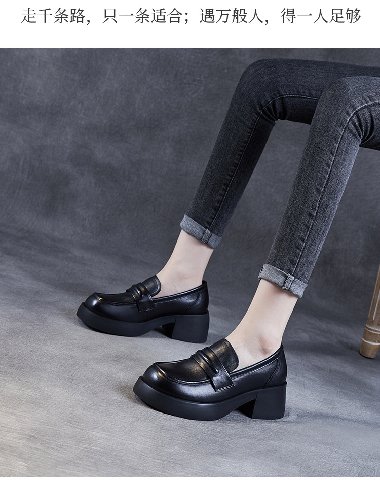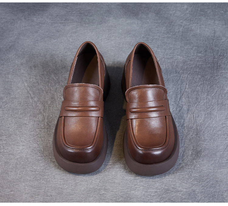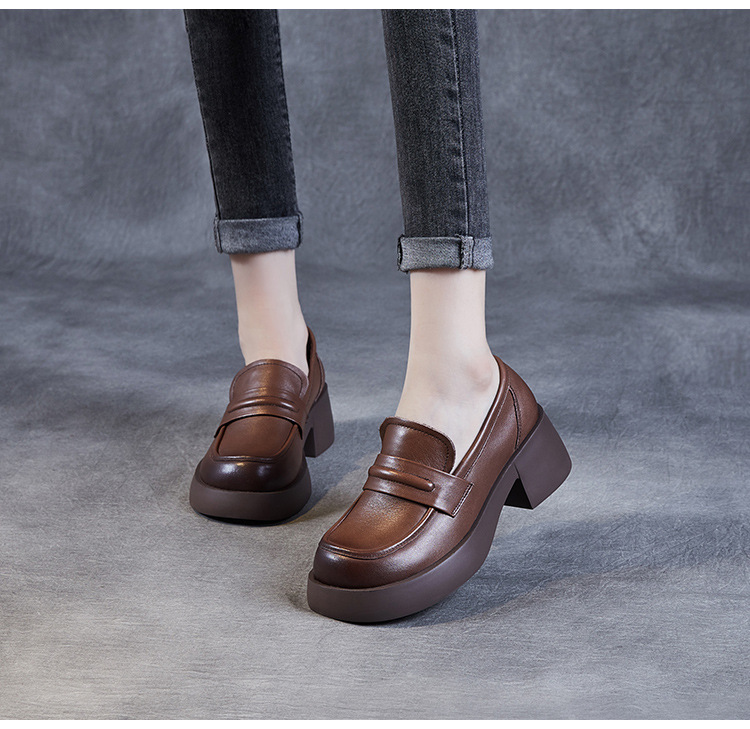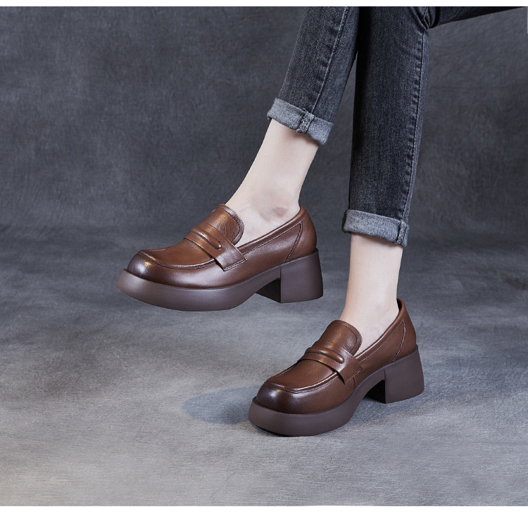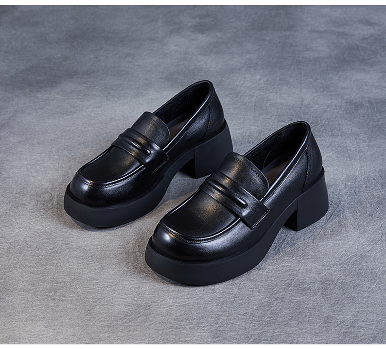 1 층 진짜 소가죽 두꺼운 밑창 큰 머리 영국 작은 가죽 신발 여성 신발 2023 새로운 가을 한 걸음 Lefu 신발스토어 가기