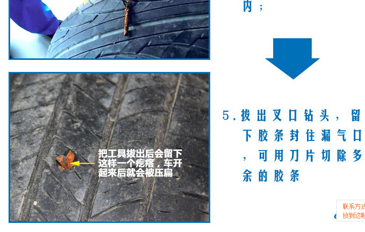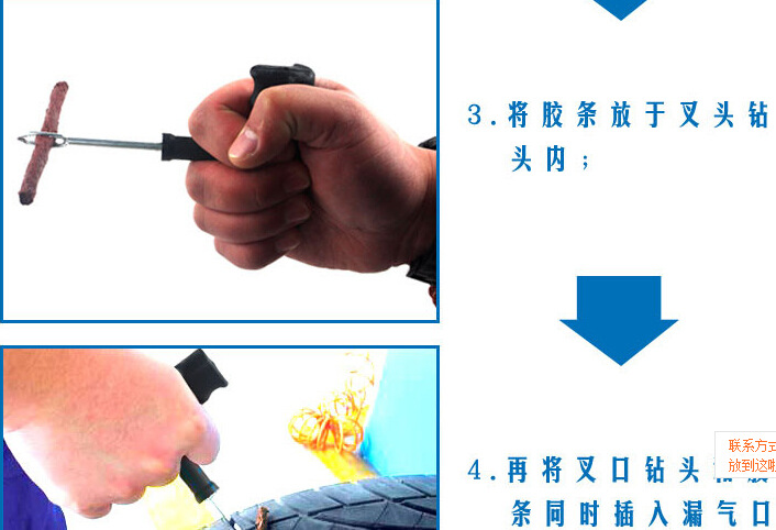 3.如是较深斜孔伤口必须保证胶条长度,确保胶条能穿透轮胎。