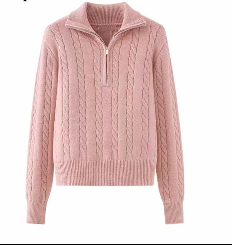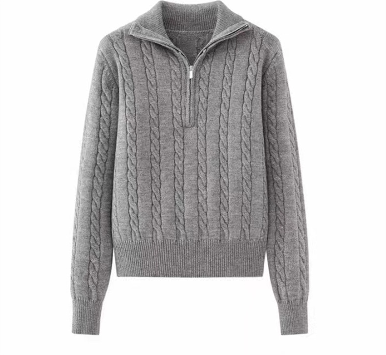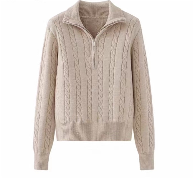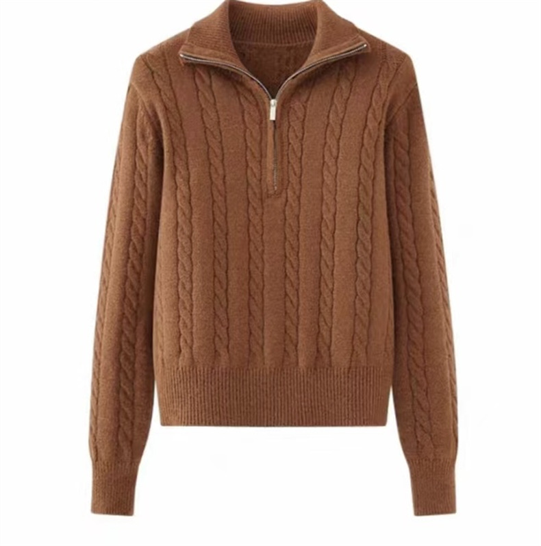 옷깃 디자인 감각 지퍼 스웨터 여자의 최고 가을과 겨울 새로운 긴 소매 단색 우아한 느슨한 스웨터 여자의 패션스토어 가기
