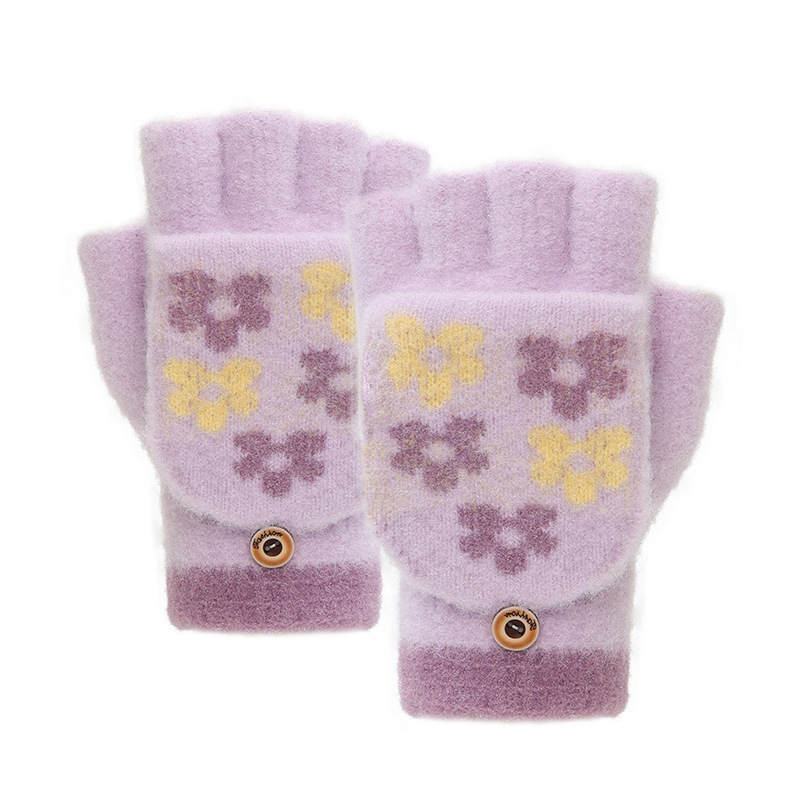 • 크리스탈 밍크 벨벳 꽃 반 손가락 플립 이중 목적 고귀한 보라색