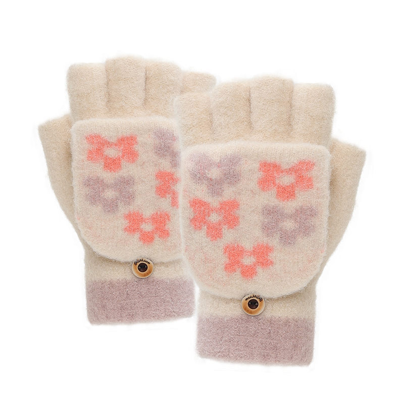 • 크리스탈 밍크 벨벳 꽃 반 손가락 플랩 이중 용도 쌀 화이트