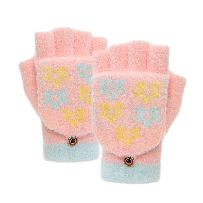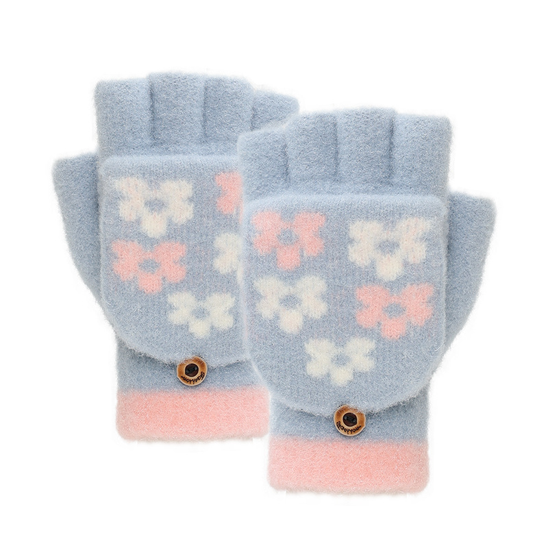 • 크리스탈 밍크 벨벳 꽃 반 손가락 플립 이중 목적 귀여운 파우더