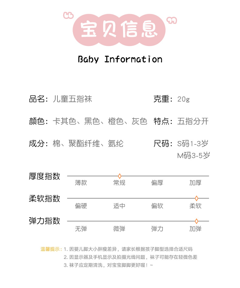 C031儿童五指袜   S码(2-4岁);M码(5-8岁)