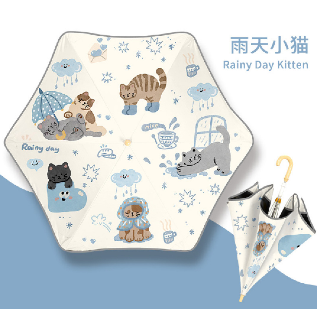 • 확대 [직경 97cm] 긴 손잡이, 둥근 모서리, 찌르기 방지 - 비오는 날 새끼 고양이(안전 반사 스트립)