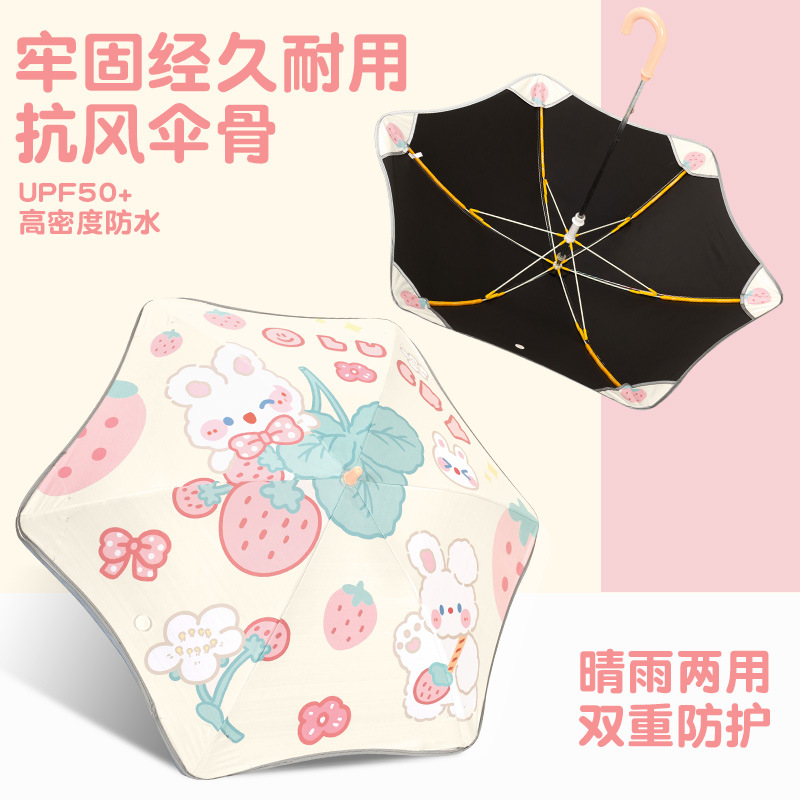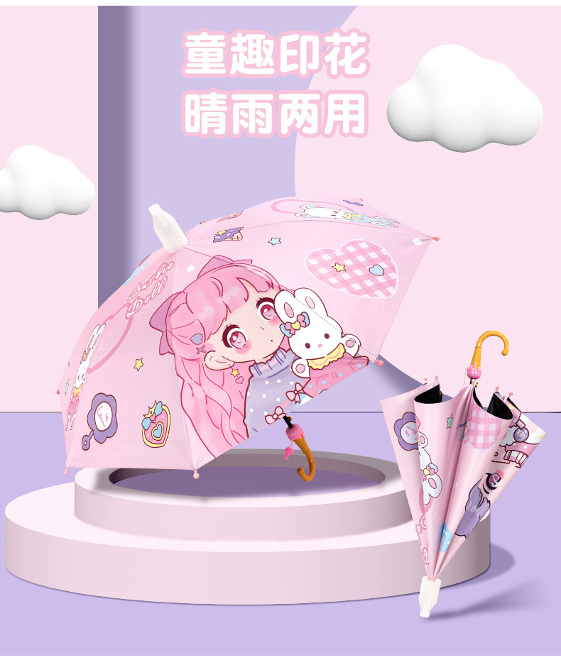 어린이를위한 안전한 둥근 우산 소녀 소년 초등학교 어린이 직선 막대 곡선 긴 손잡이 우산 맑은 우산 이중 사용