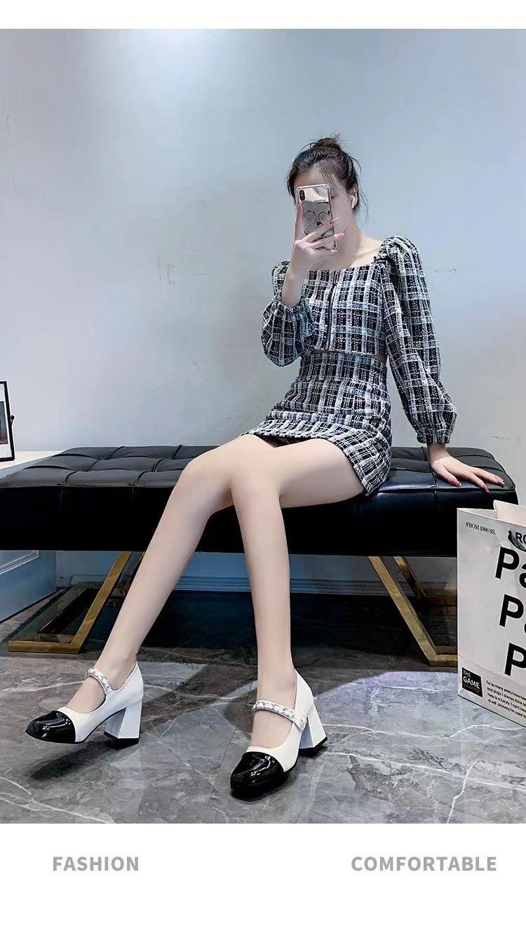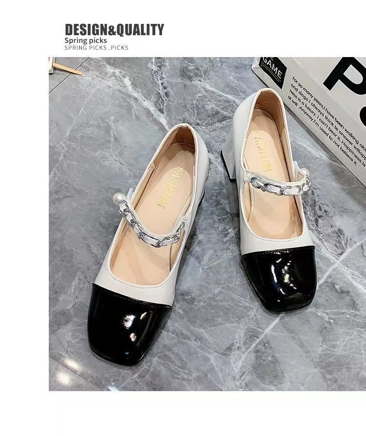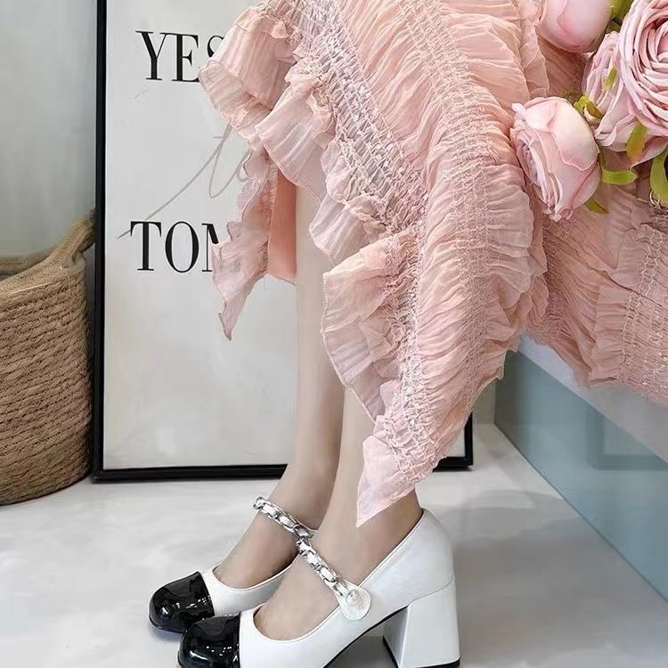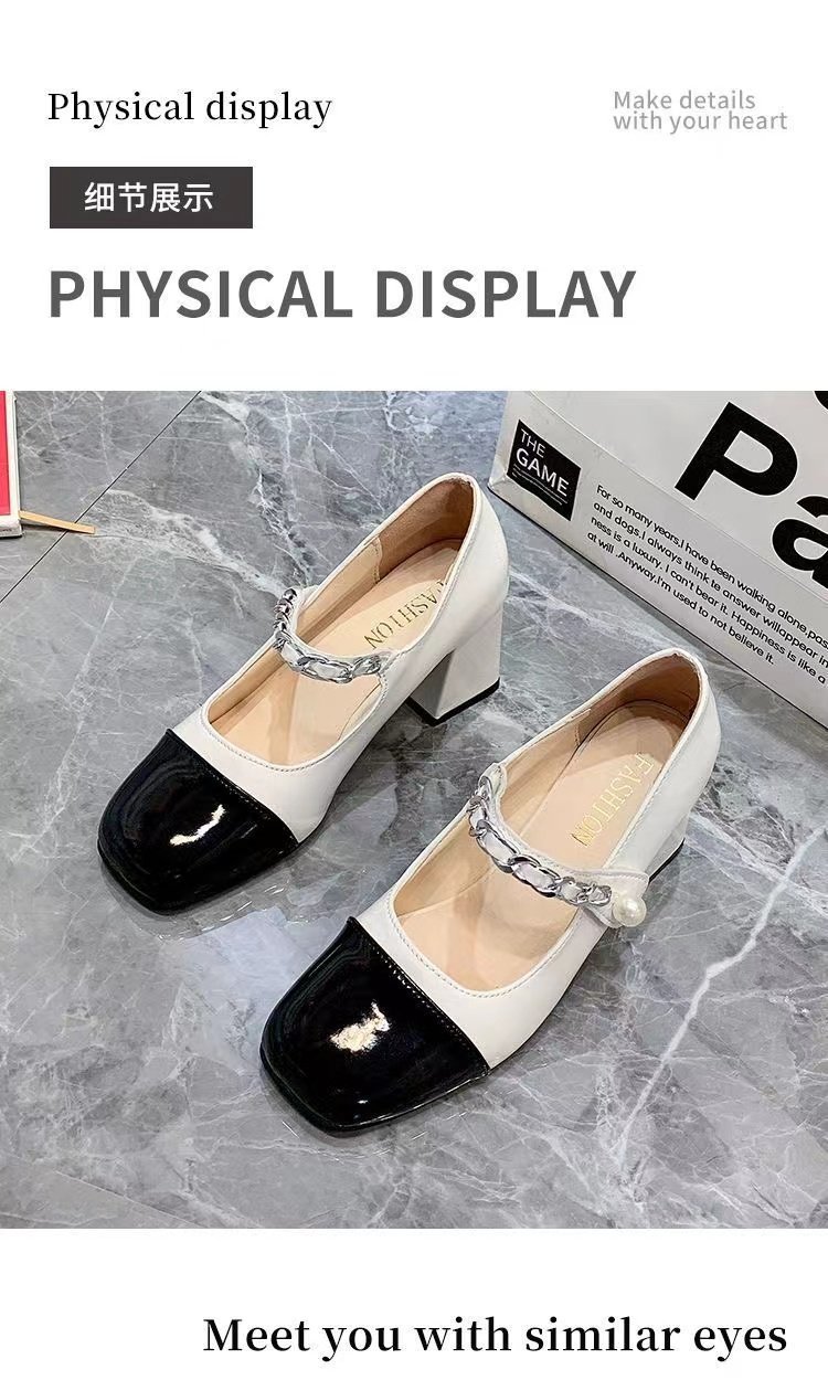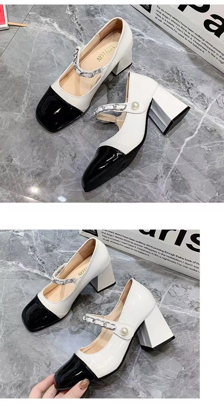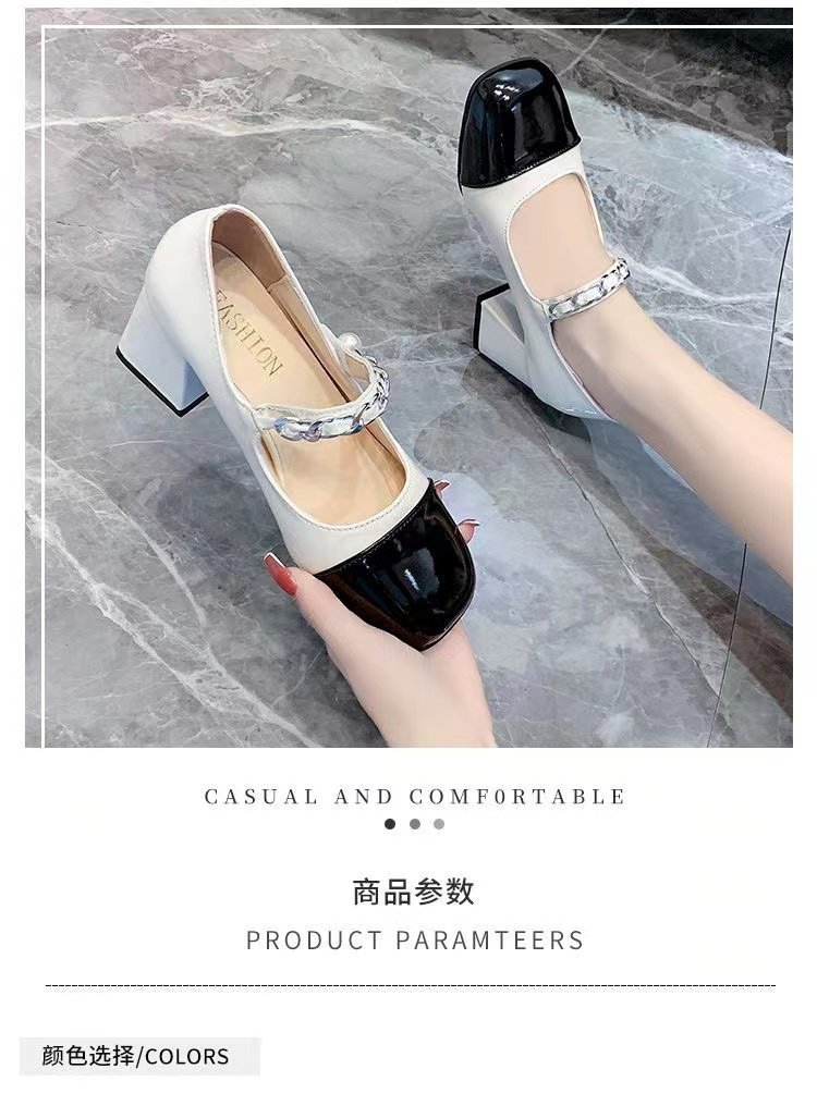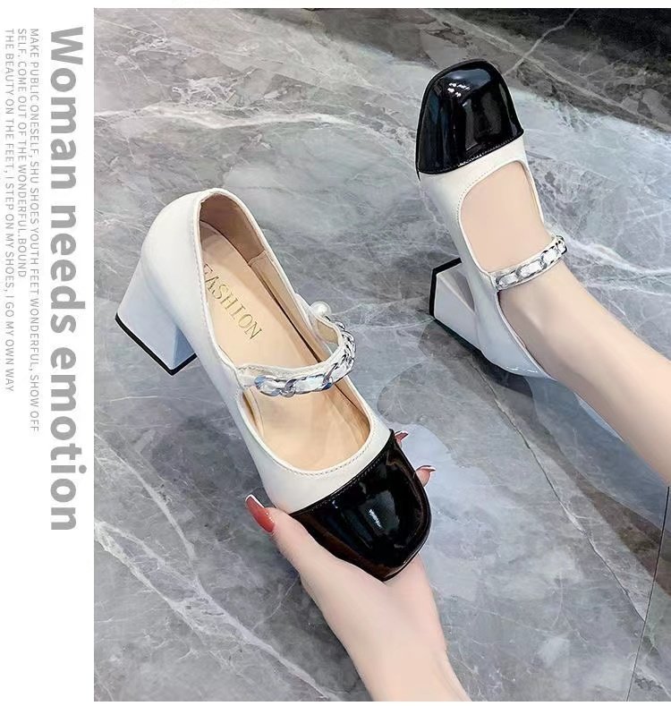 메리 제인 여성 신발 하이힐 2023 가을 새로운 프랑스 복고풍 스타일 컬러 매칭 두꺼운 발 뒤꿈치 라운드 발가락 여성용 싱글 레이어 신발스토어 가기