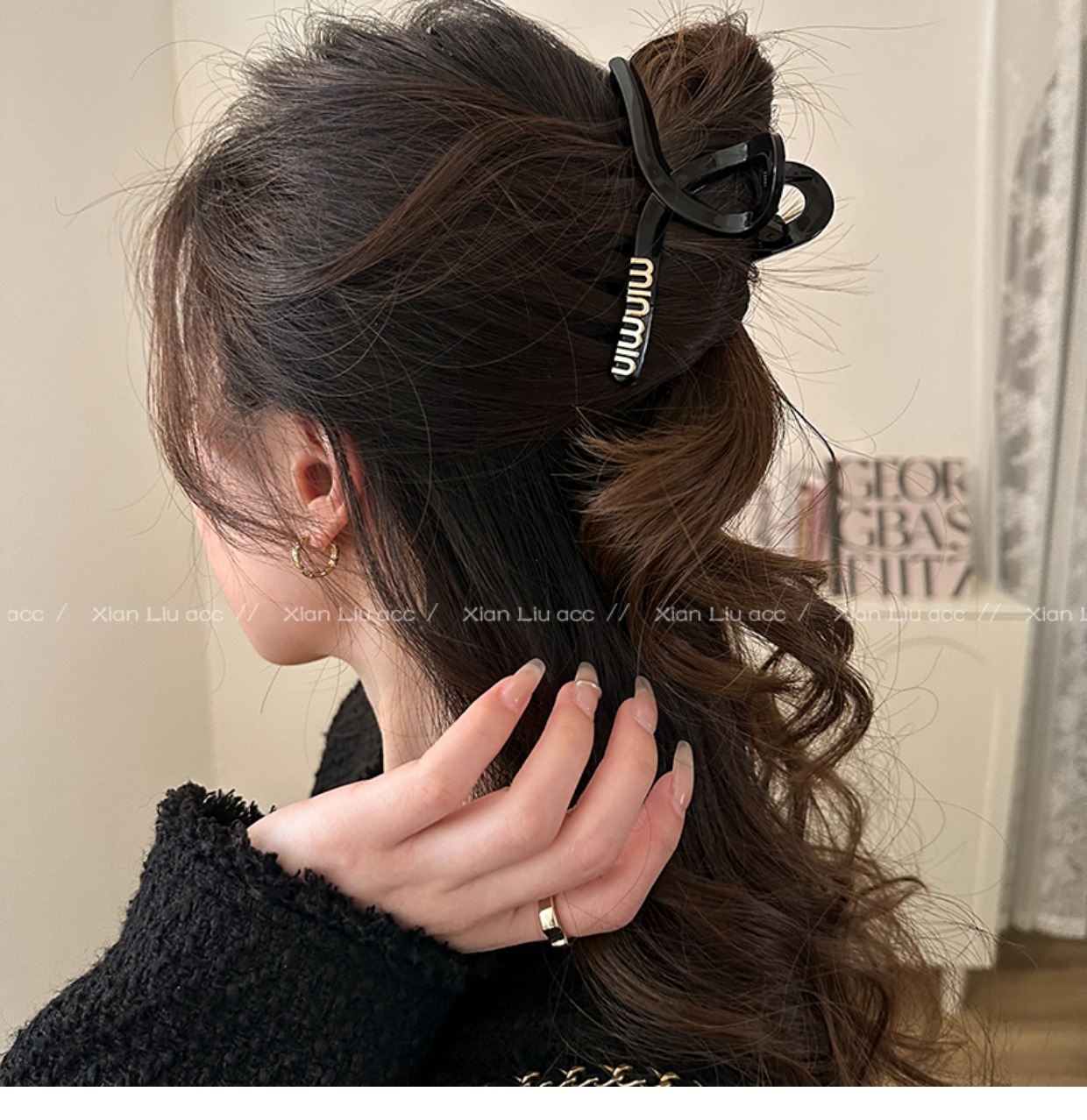여성용 2023 년 블랙 대형 그랩 헤어 클립 머리 뒷면을위한 새로운 고급 헤어 액세서리 상어 클립 머리 장식 헤어 클립스토어 가기