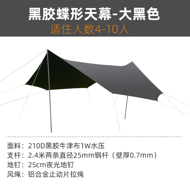 강도 상인 캐노피 야외 텐트 나비 자외선 차단제 자외선 차단 블랙 고무 캐노피 캠핑 멋진 천막