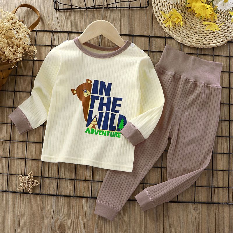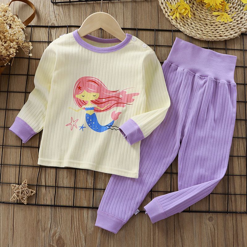 순면 파자마를 세트 어린이 하이 웨이스트 속옷 가을과 겨울 여아 아기의 가을 옷 가을 바지 아동 의류 소년 가정 옷