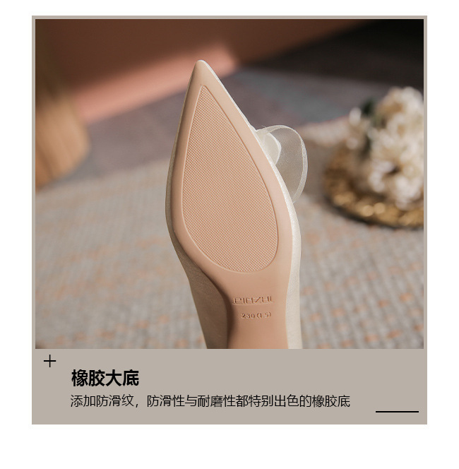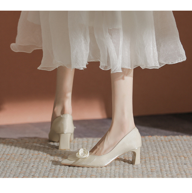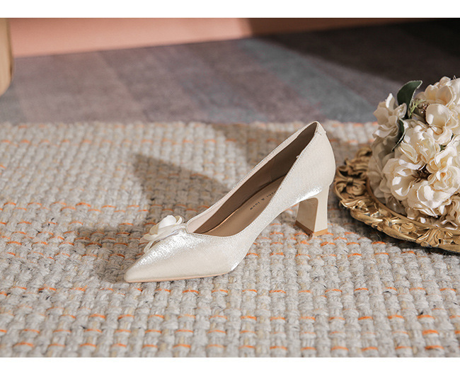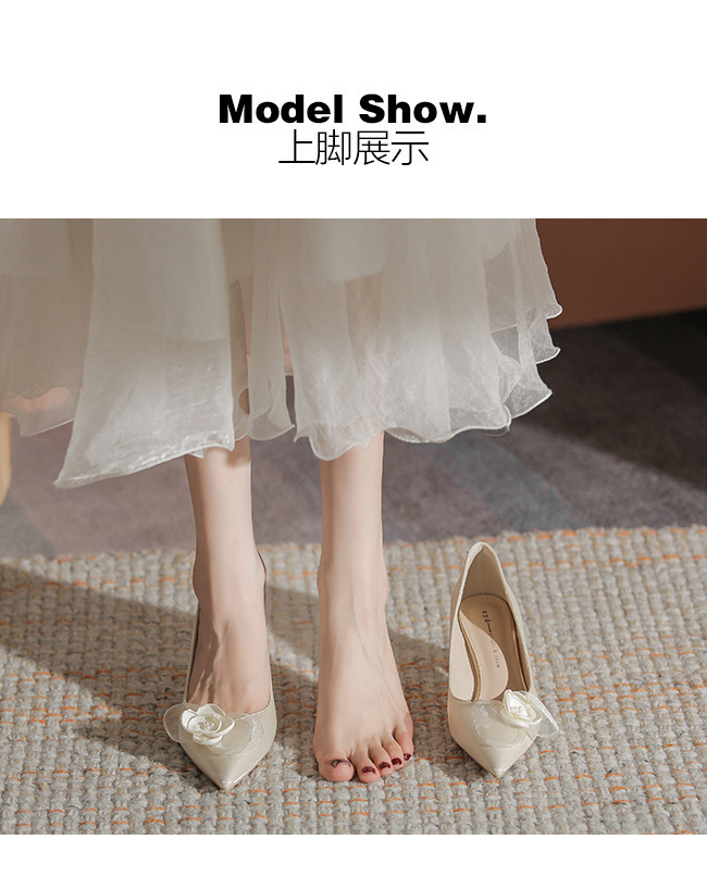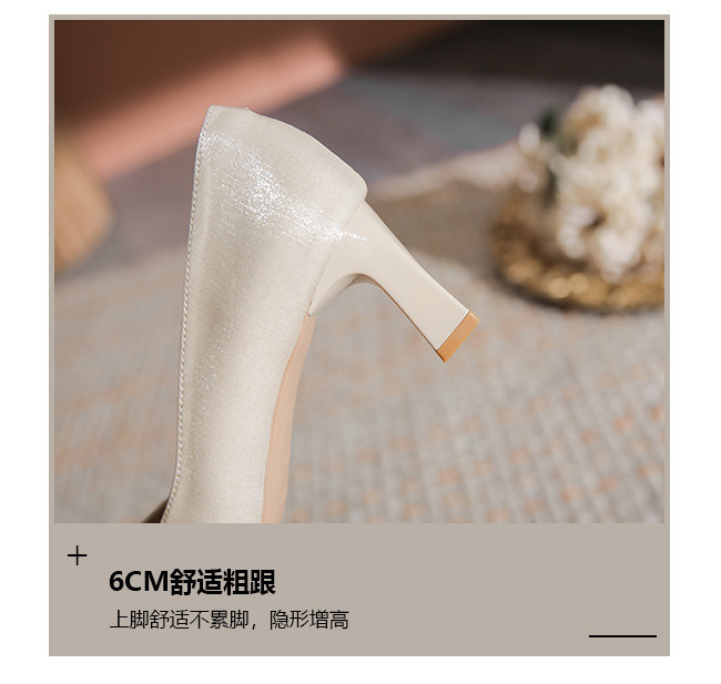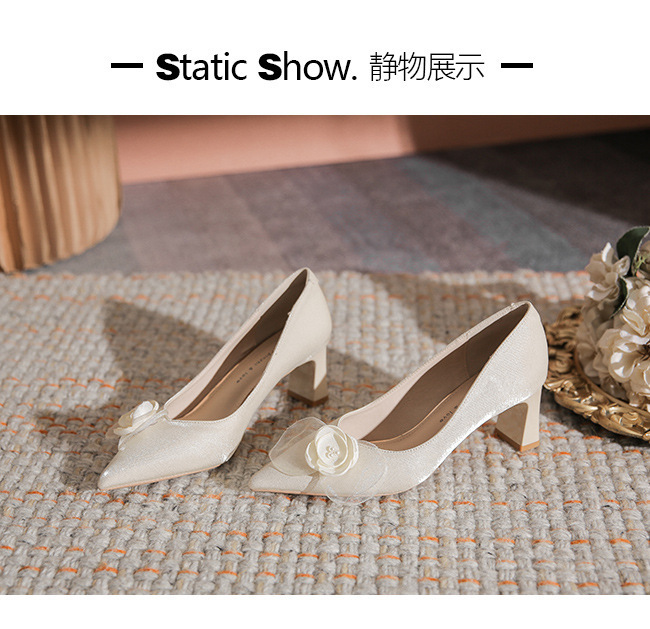 初心~山茶花婚鞋女粗跟不累脚浅口尖头优雅订婚高跟鞋日常可穿秋
