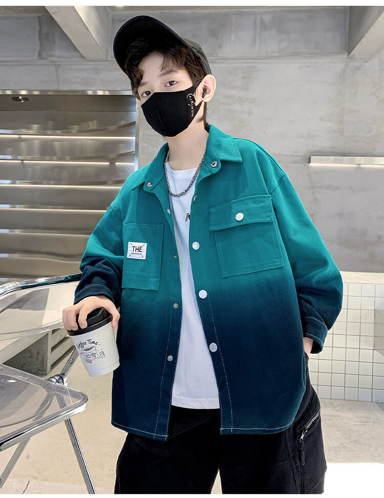 소년 가을 셔츠 재킷 2025 새로운 중대형 아동복 봄, 가을 스타일 소년 유행 소년상의