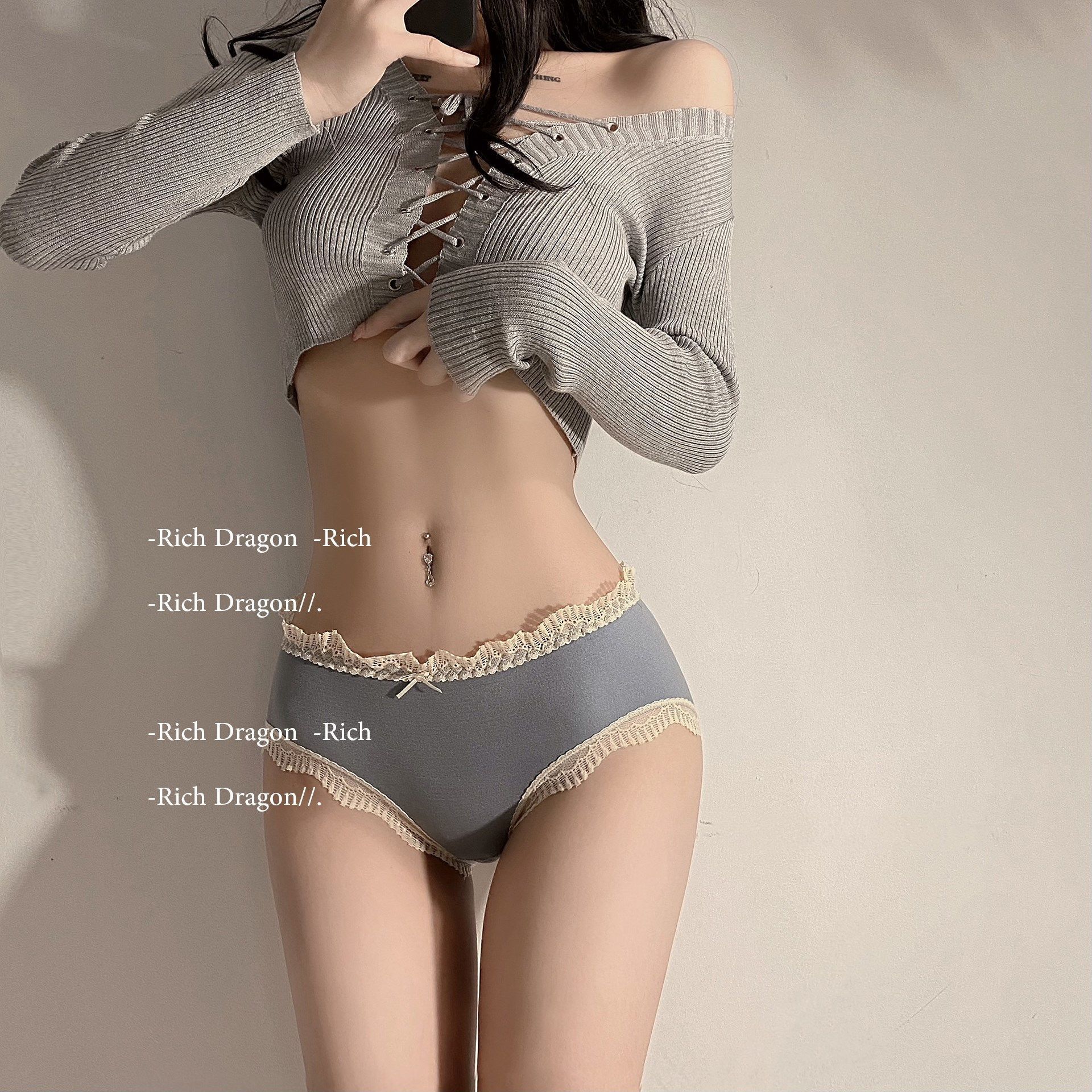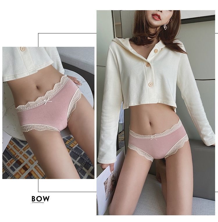 모달 속옷 여성 학생 면 가랑이 레이스 섹시 원활한 플러스 사이즈 중간 허리 엉덩이 일본식 팬티스토어 가기
