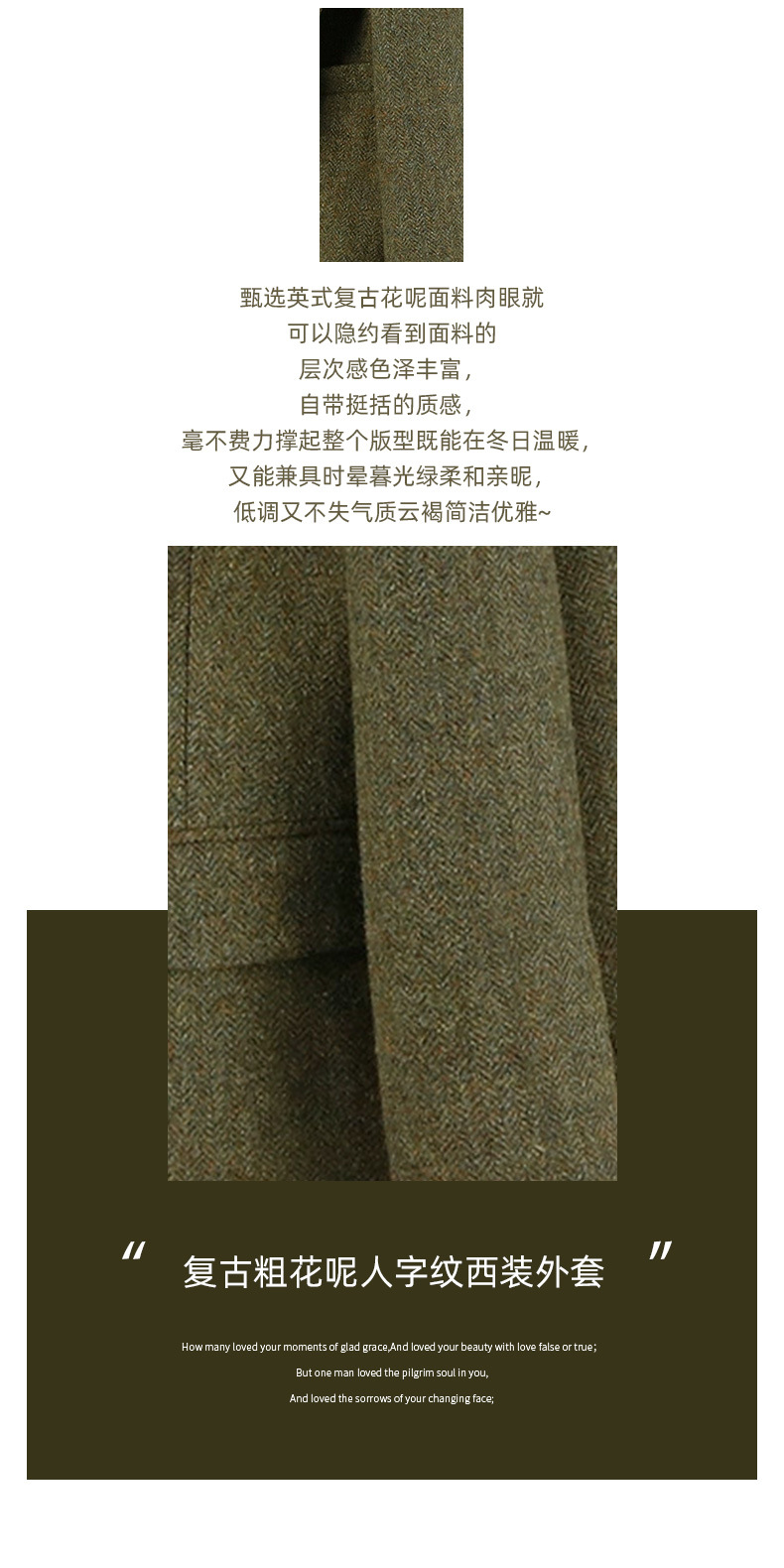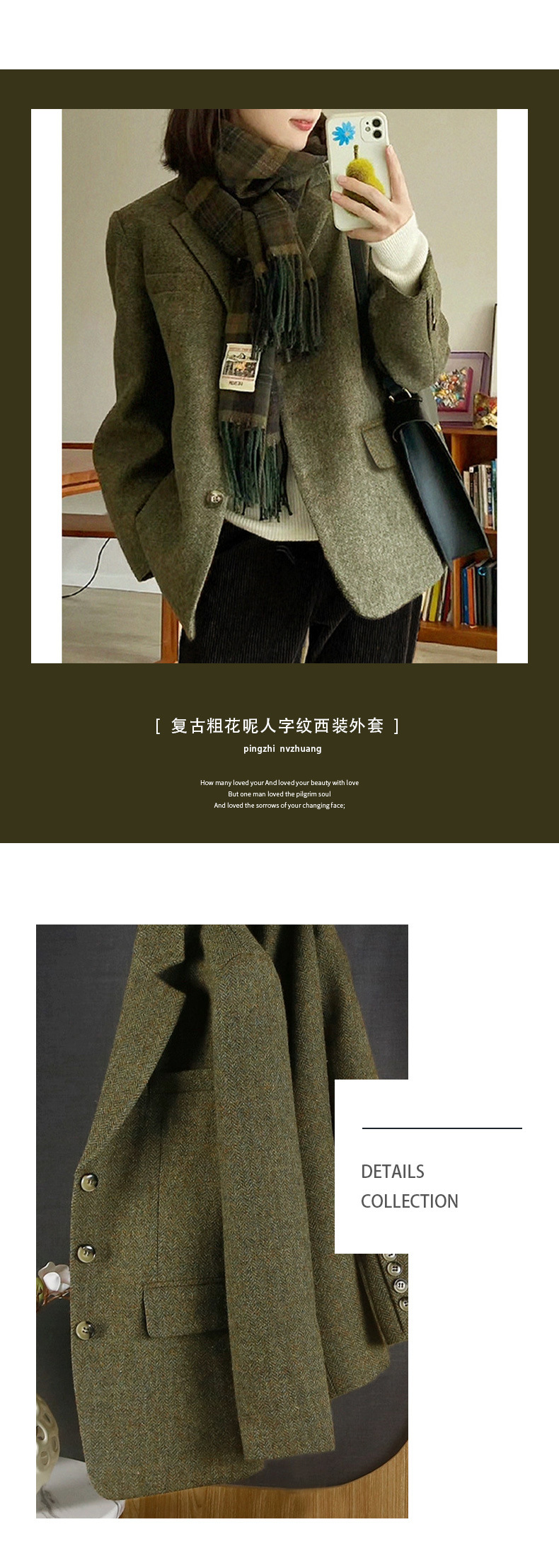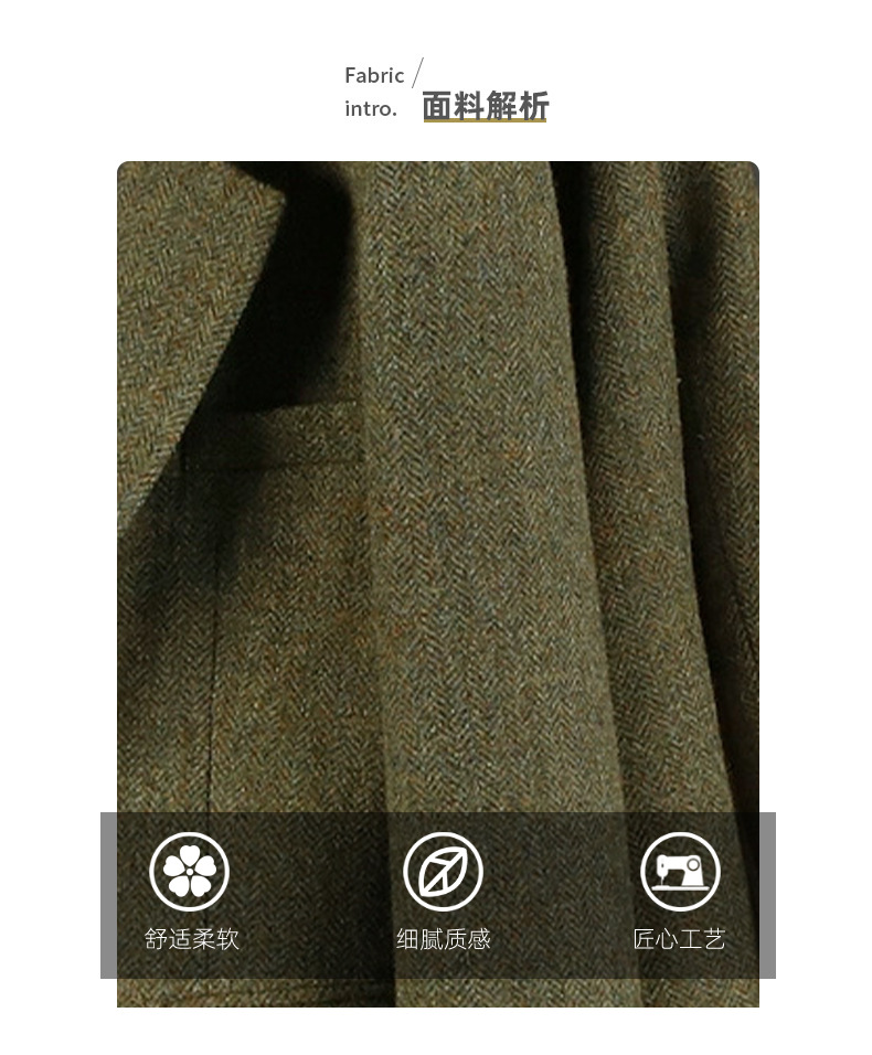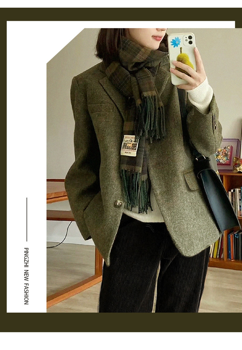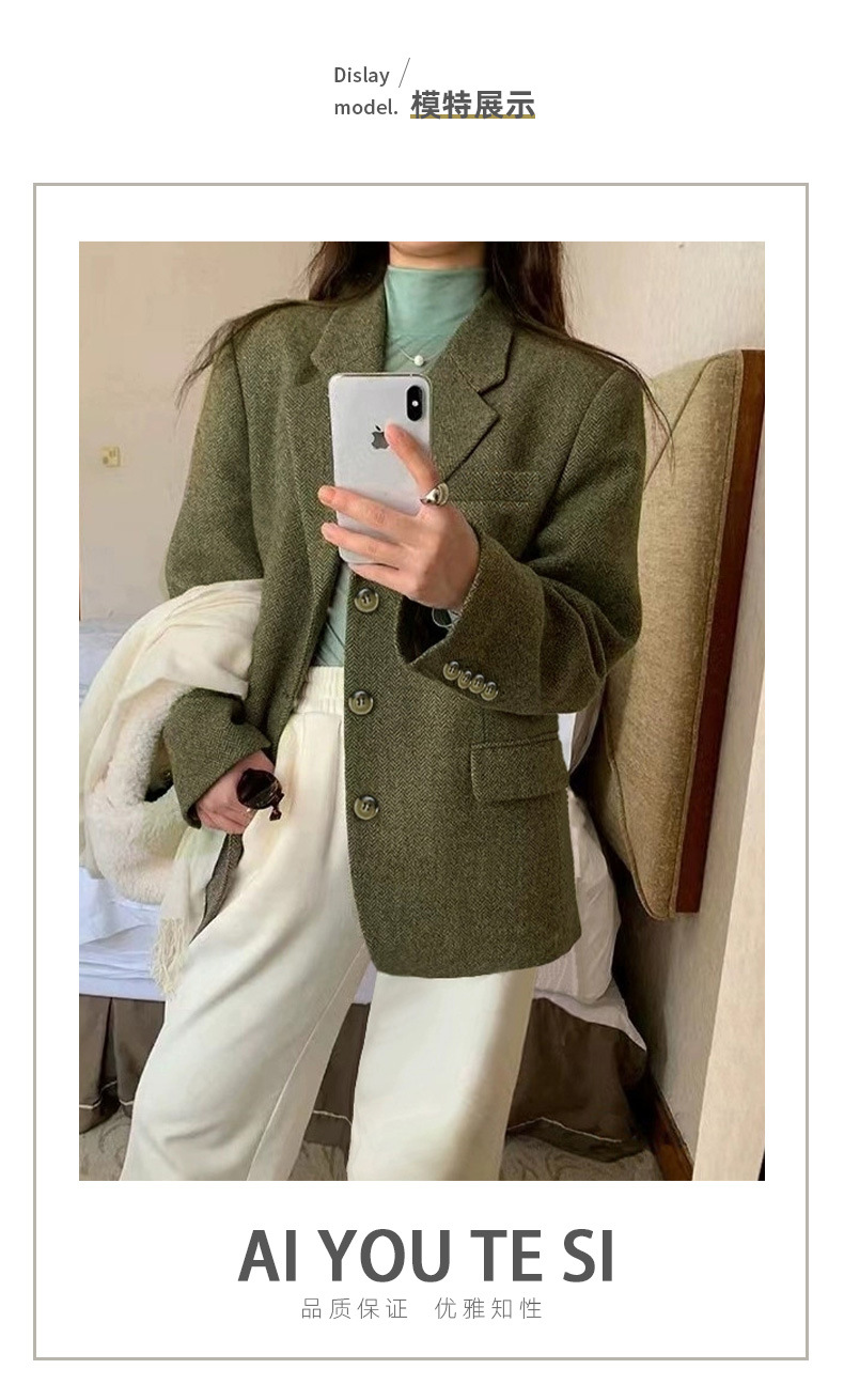 100% 울 세트 재킷 높은 질감 헤링본 복고풍 트위드 봄과 가을 새로운 녹색 짧은 여성 의류스토어 가기