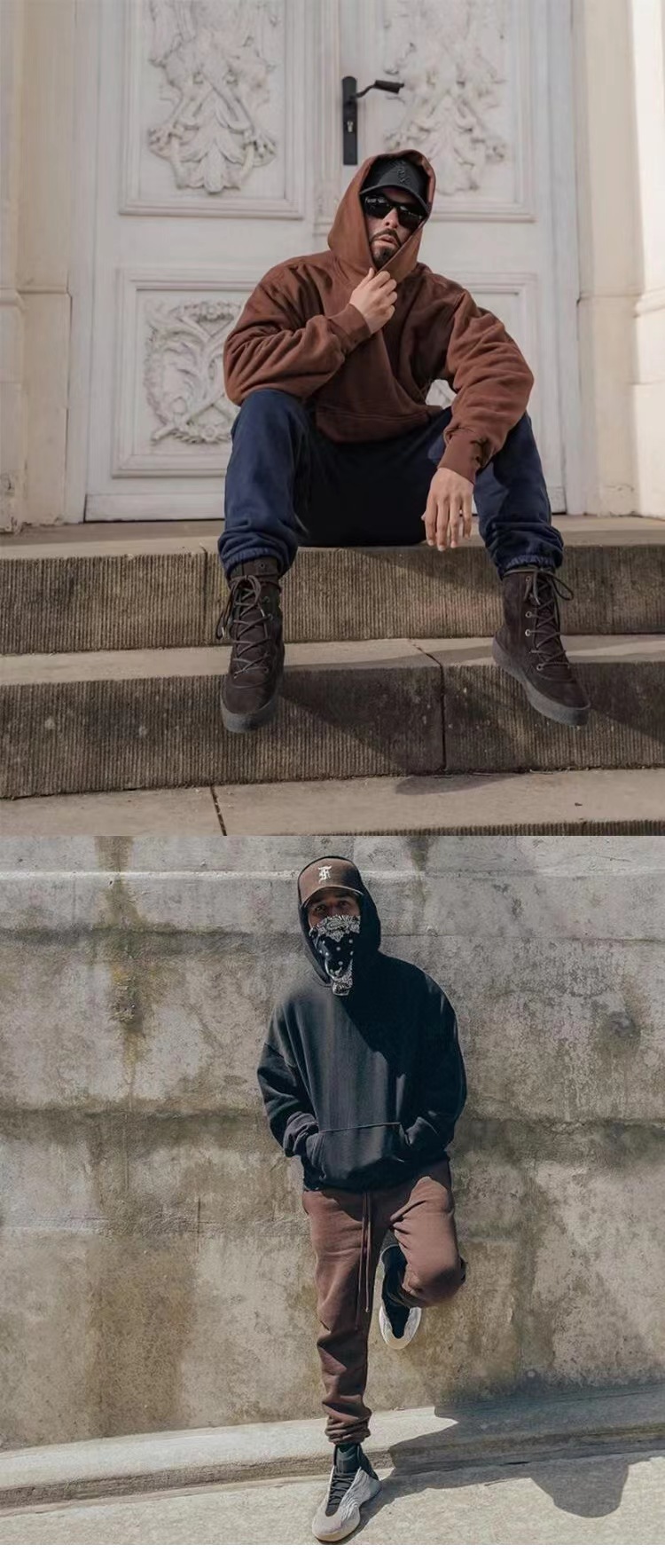 남성과 여성을위한 코튼 및 벨벳 버전 짧은 와이드 실루엣 더블 레이어 후드 스웨터 Kanye 스트리트 패션 INS