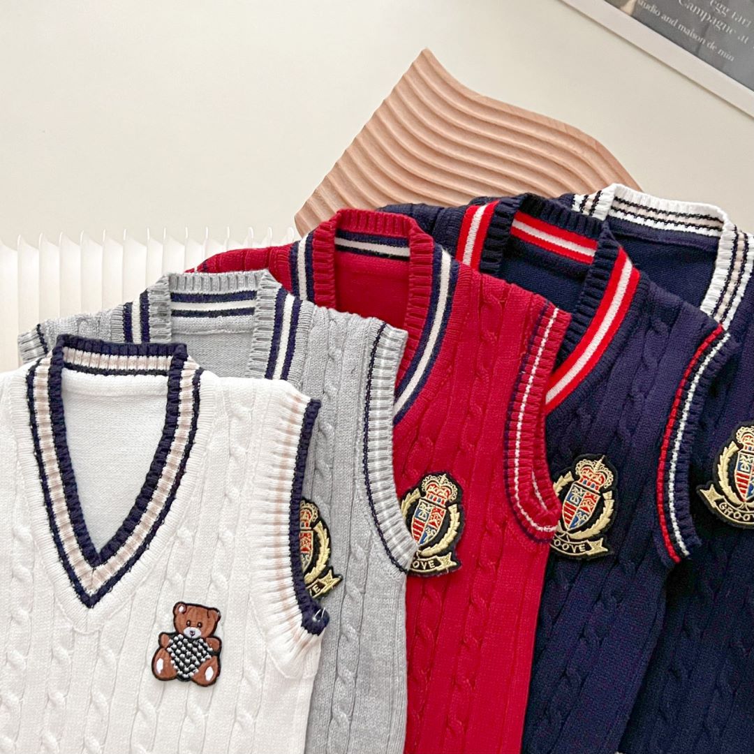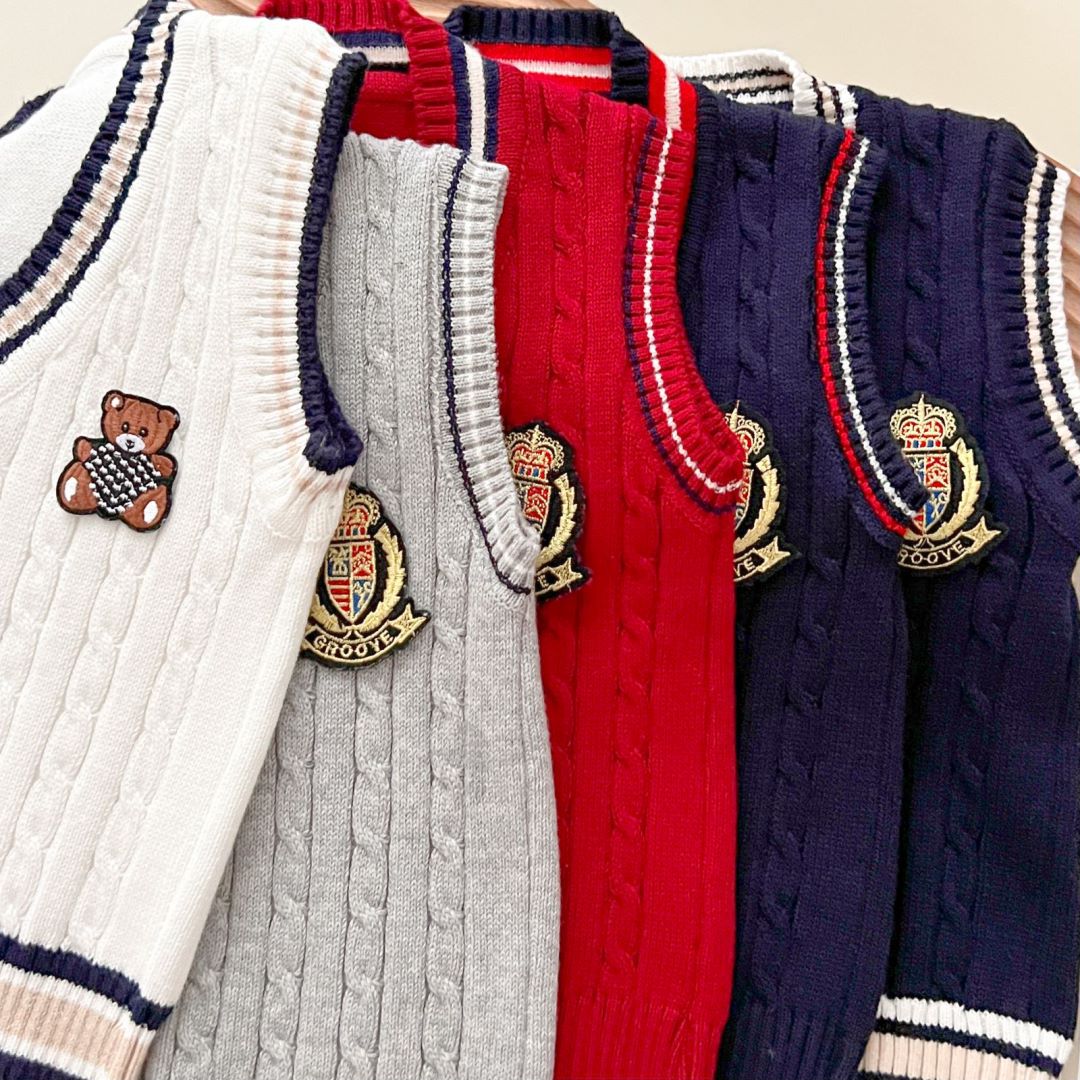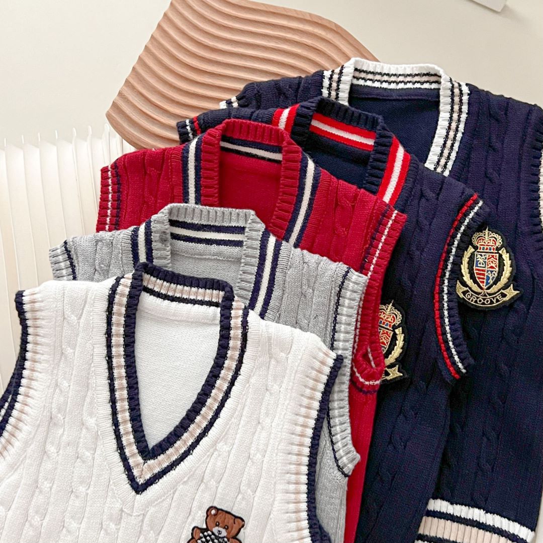 JINYONG 어린이 스웨터 어린이 멋진 새로운 한국 스타일 아기 캐주얼 조끼 서양 대학 스타일 남아 조끼 유행스토어 가기