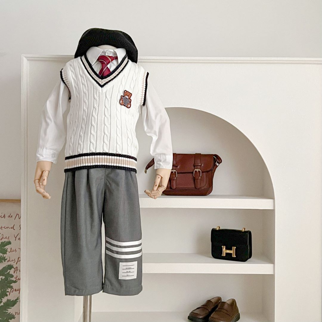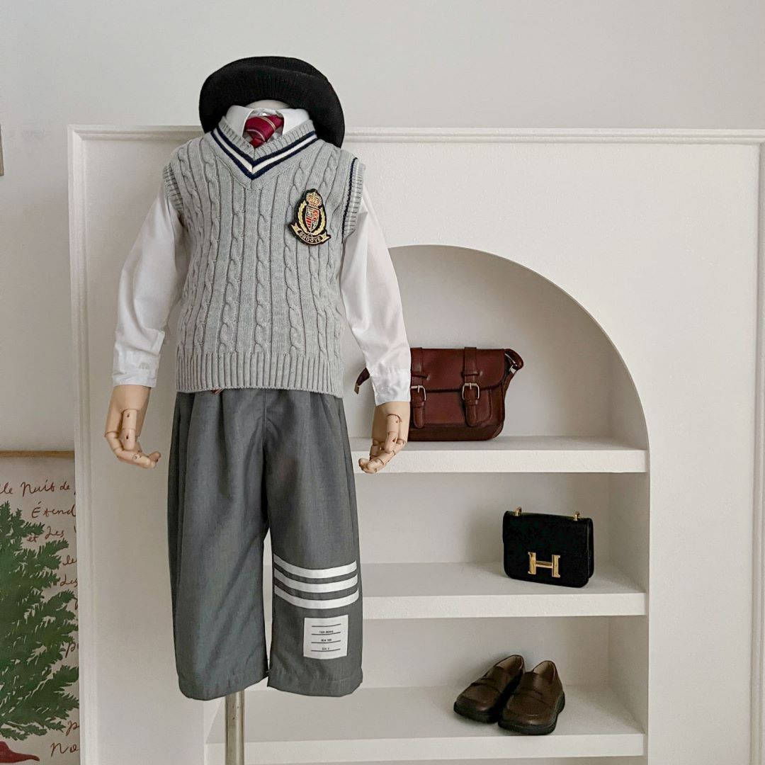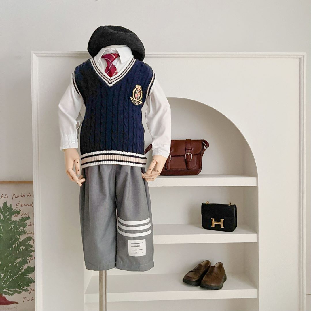 JINYONG 어린이 스웨터 어린이 멋진 새로운 한국 스타일 아기 캐주얼 조끼 서양 대학 스타일 남아 조끼 유행