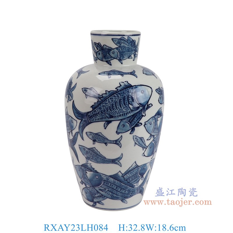 Jingdezhen 현대 파란색과 꽃은 빨간 세라믹 꽃병 물고기 패턴 꽃병 꽃 삽입 거실 홈 창조적 인 장식 장식품스토어 가기
