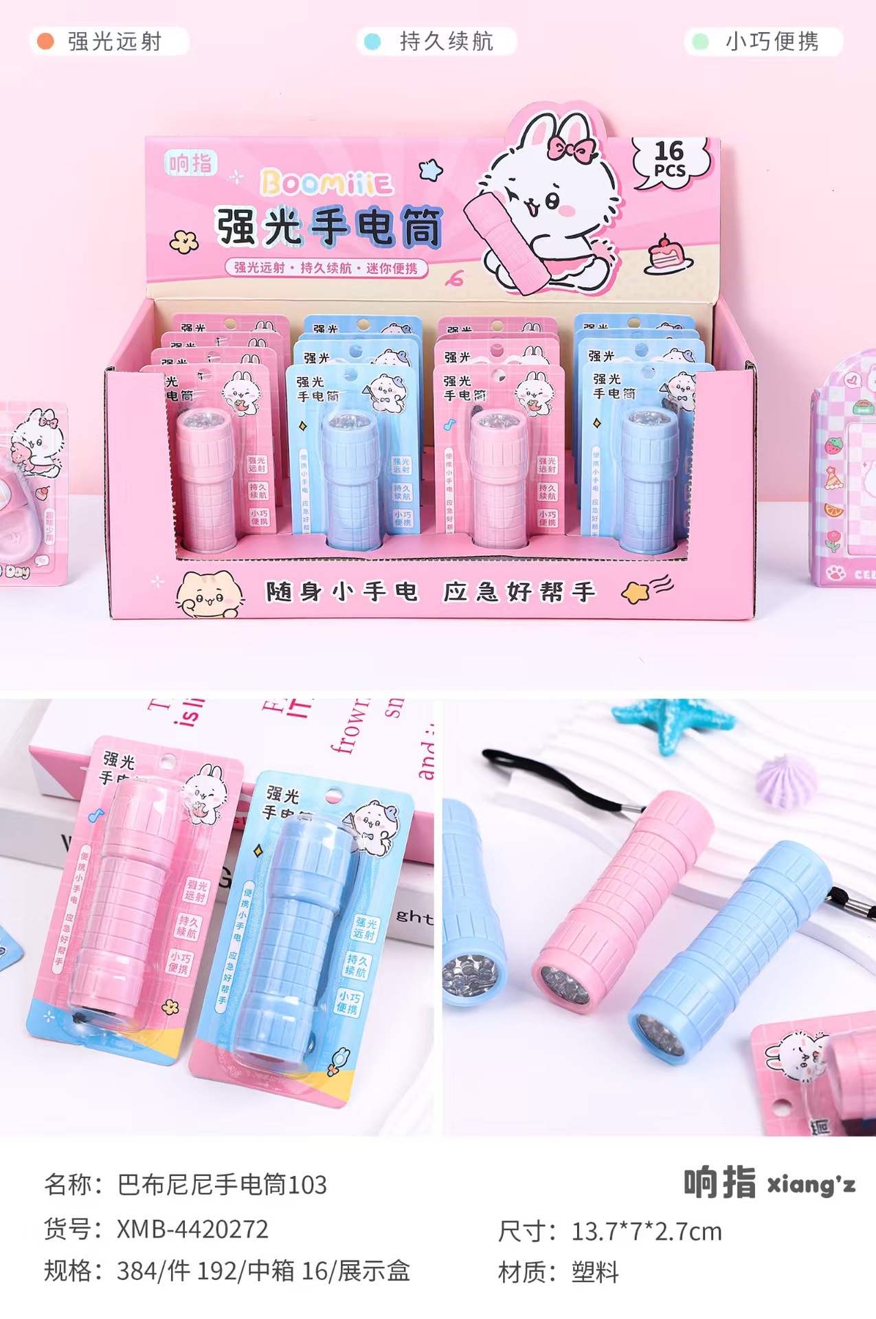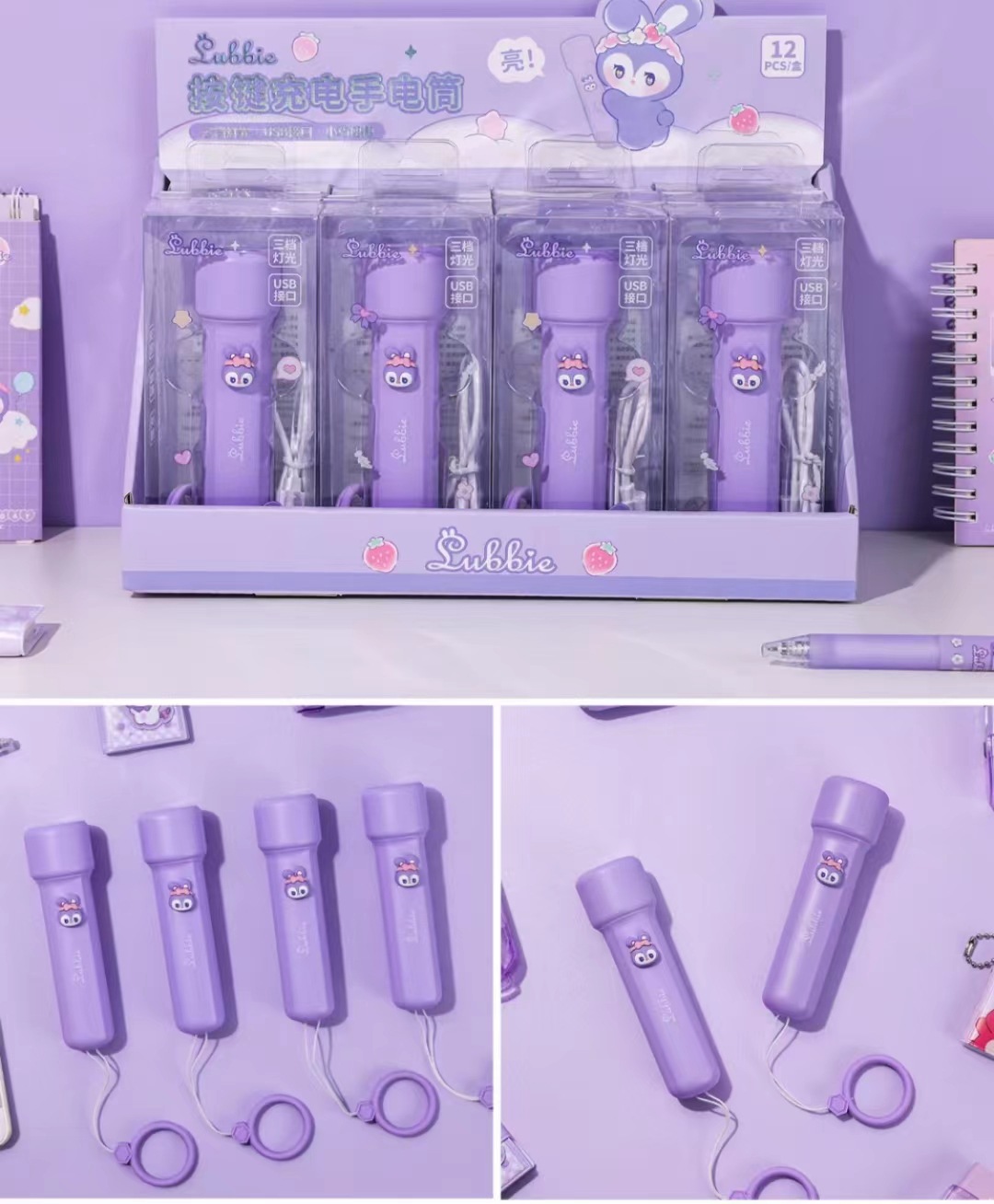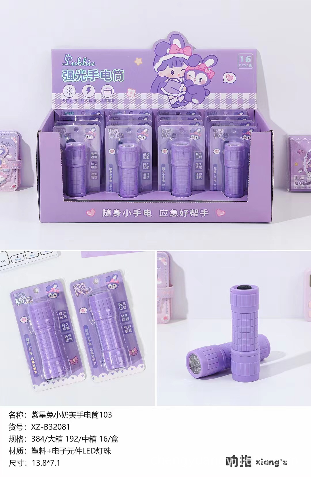 • XZ-B32069 퍼플 스타 래빗 충전식 손전등 [1상자에 12개입]