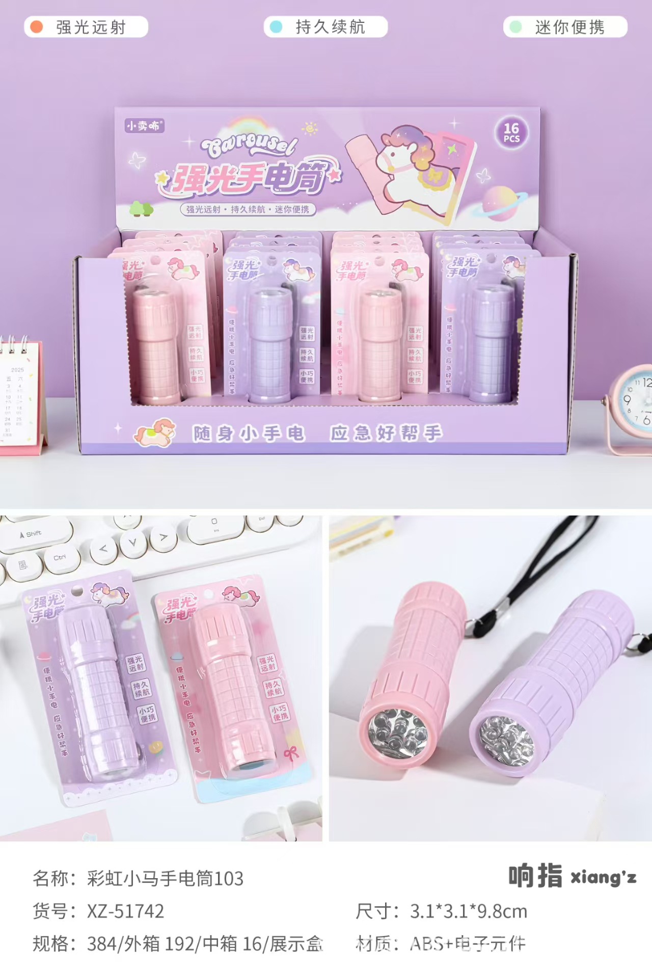 • 51742 레인보우 포니 손전등 [1박스 16개]