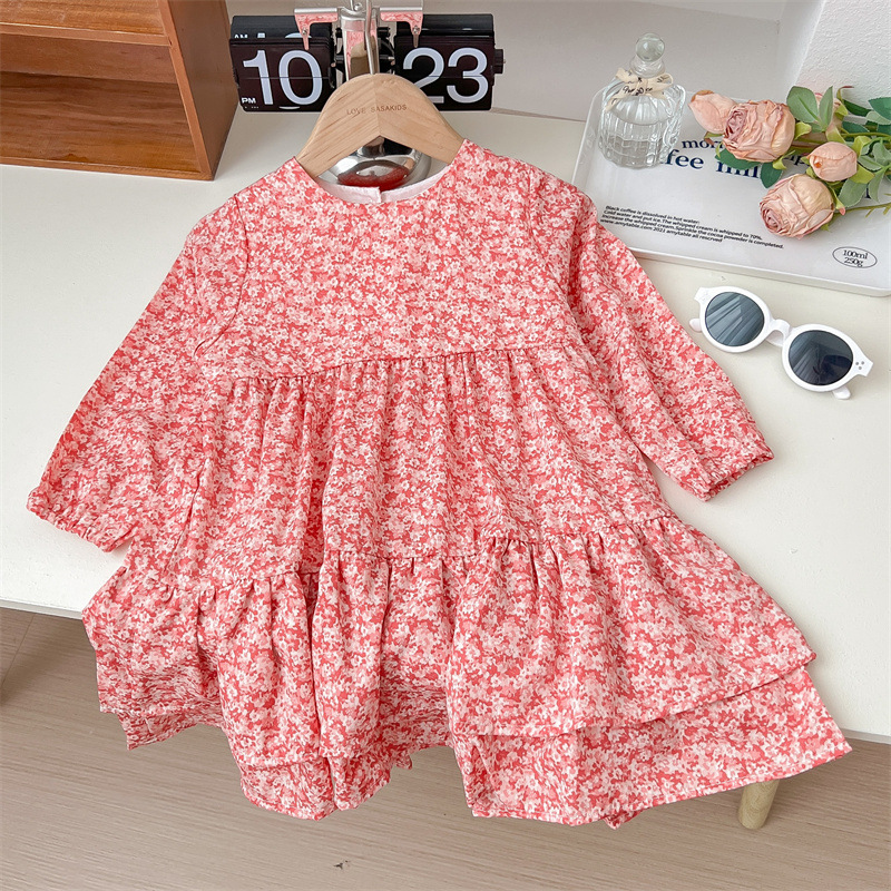 [핑크 집] 여자 가을 옷 원피스 2024 새로운 어린이 공주 원피스 꽃 스커트 서양식 투피스 세트스토어 가기